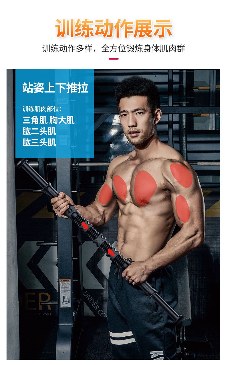 臂力器可调节拉力器胸肌腹肌家用健身训练器材臂力棒握力器80kg男