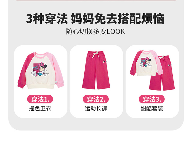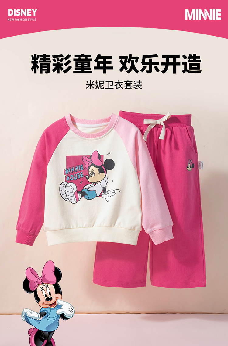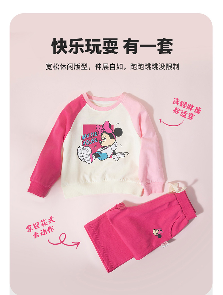 【米妮拼色插肩袖】24春款女童套装粉色系运动休闲卫衣卫裤套装ZD1DT016