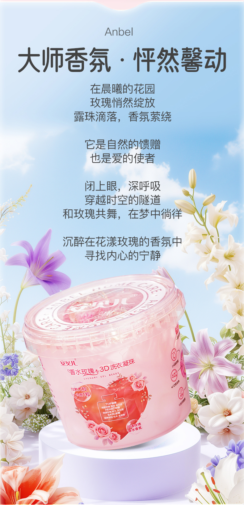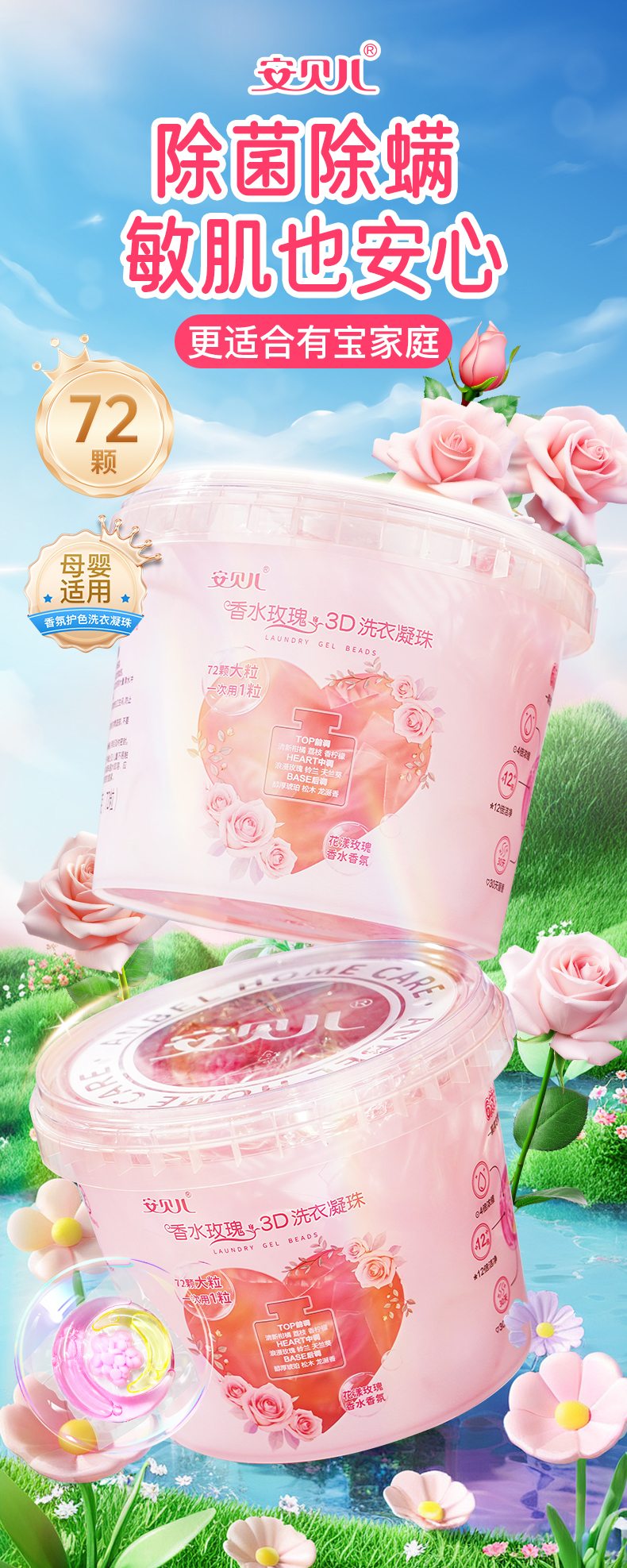 香水玫瑰3D洗衣凝珠72粒 (3腔洗衣凝珠)