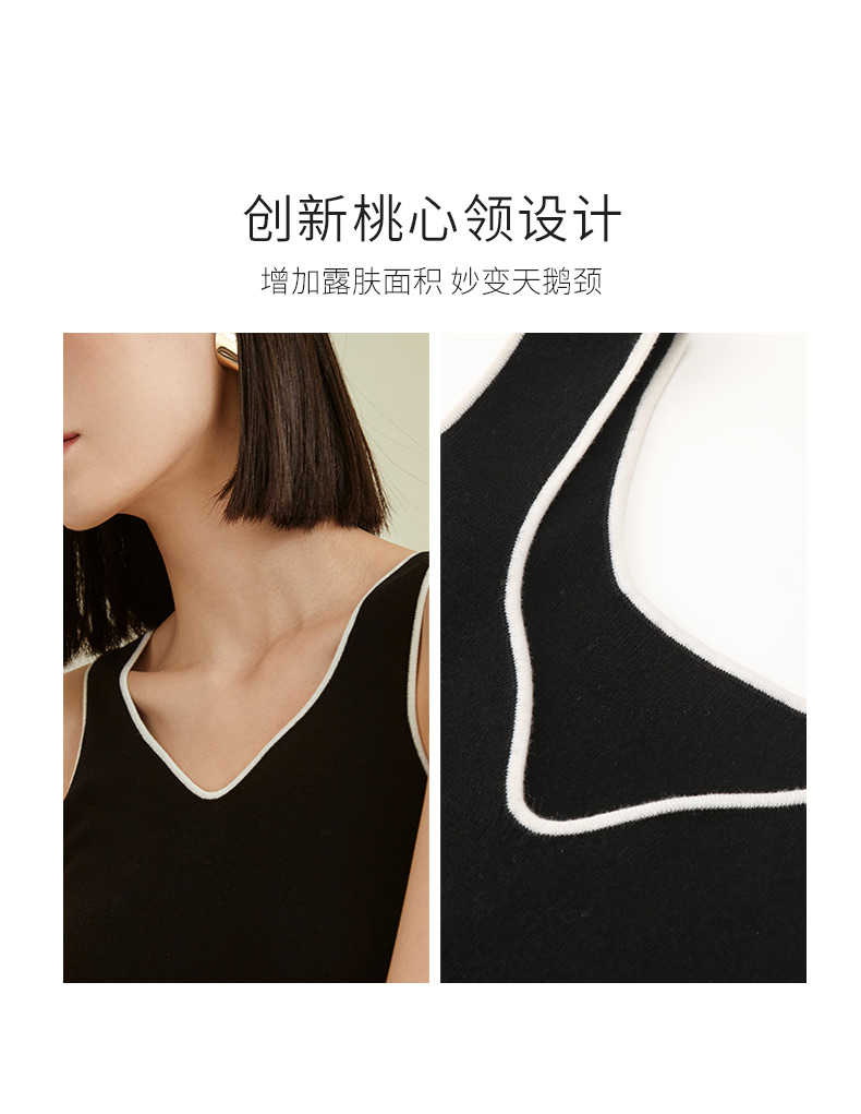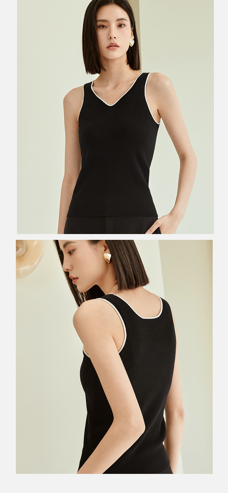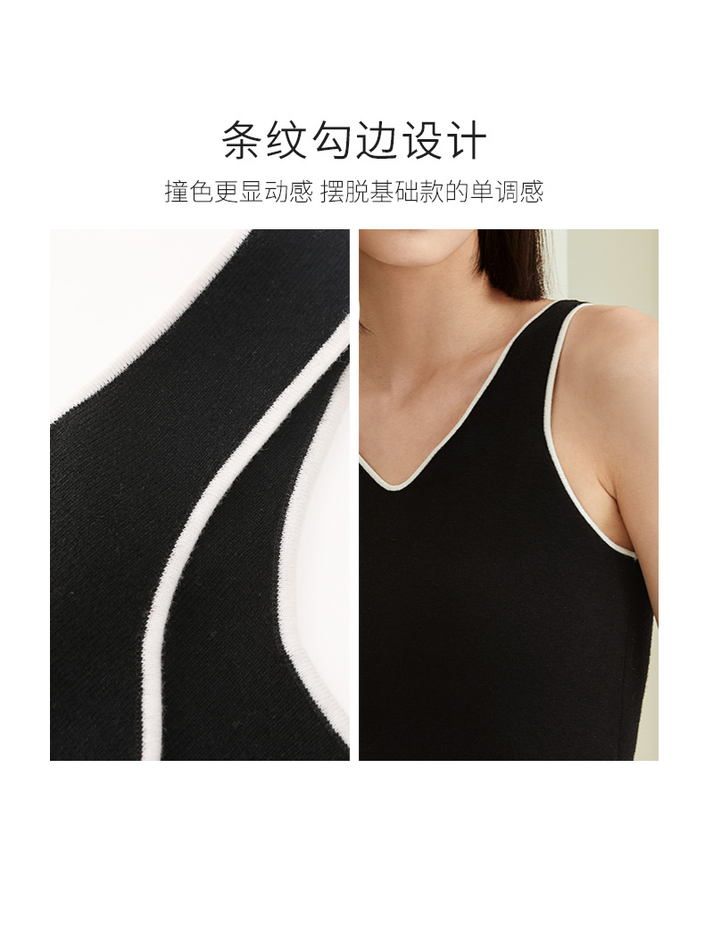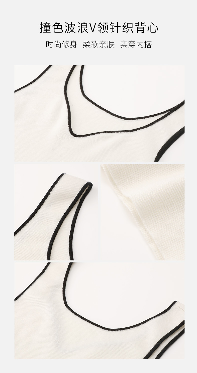 玳莎波浪V领针织背心女新款包边撞色设计感修身吊带针织衫 DC33002