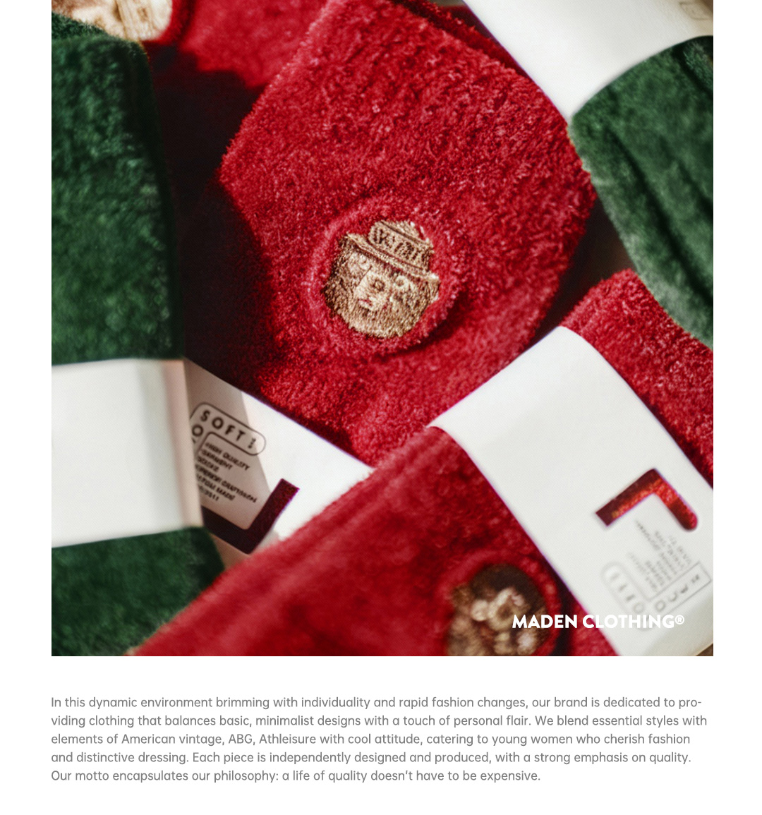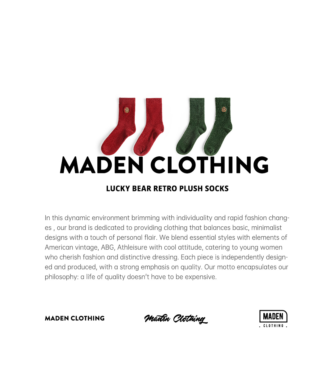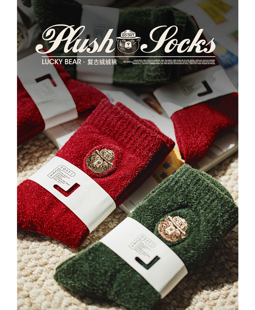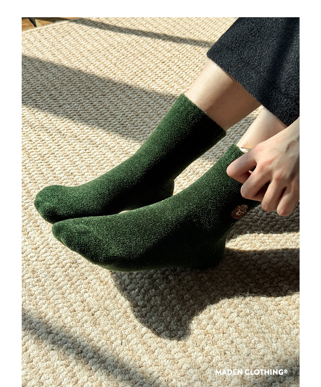 马登红色圣诞袜子珊瑚绒复古加厚保暖中筒睡眠刺绣弹力长袜女秋冬