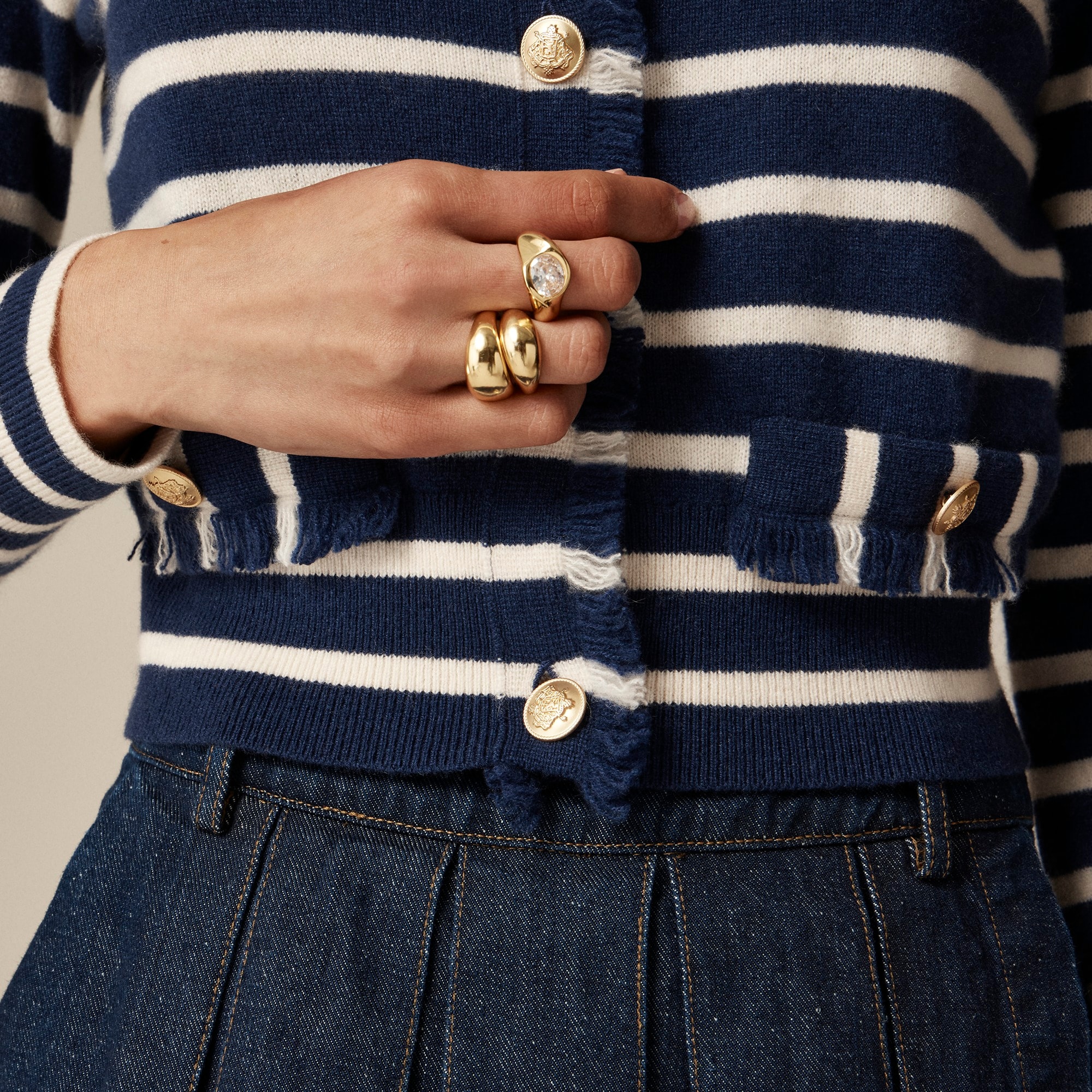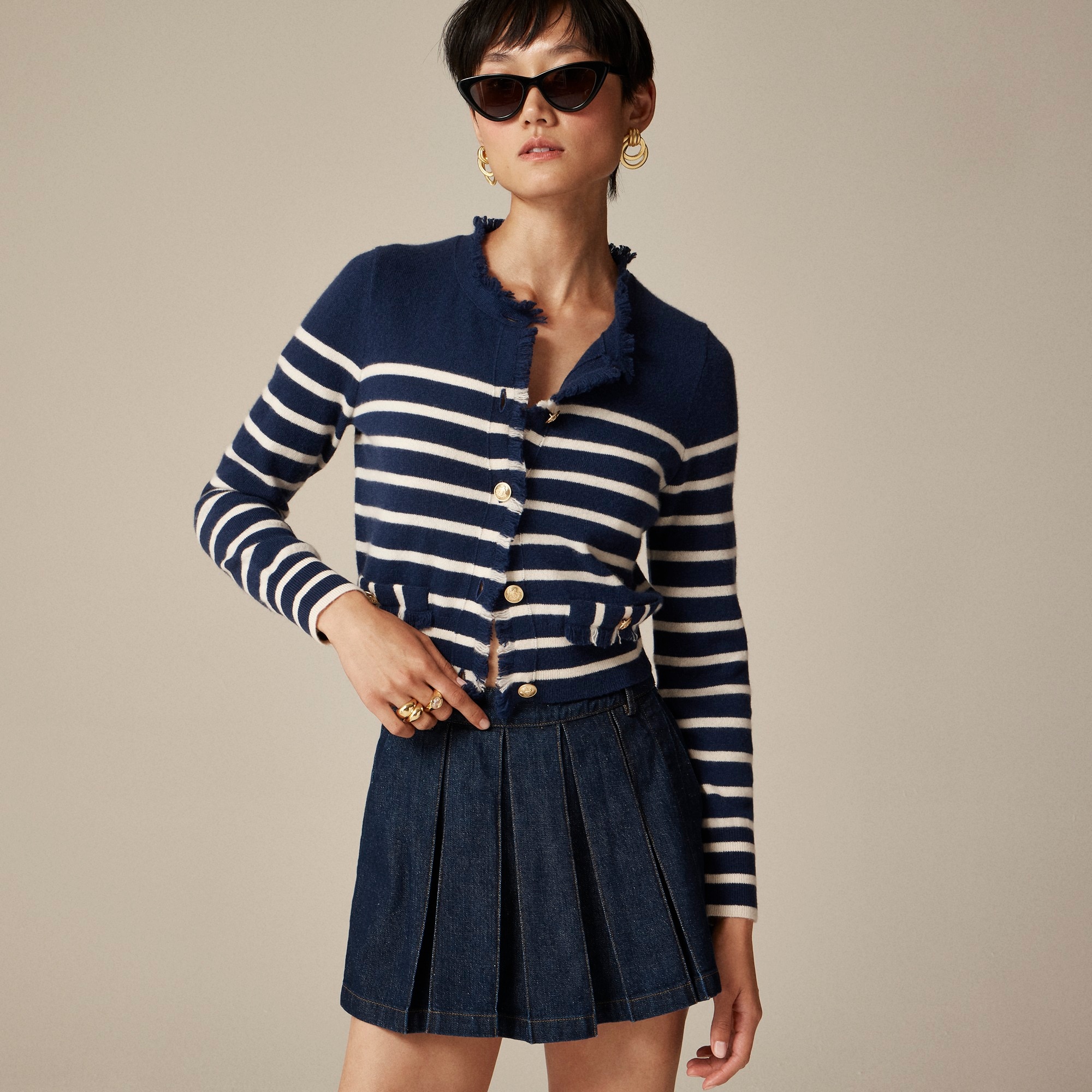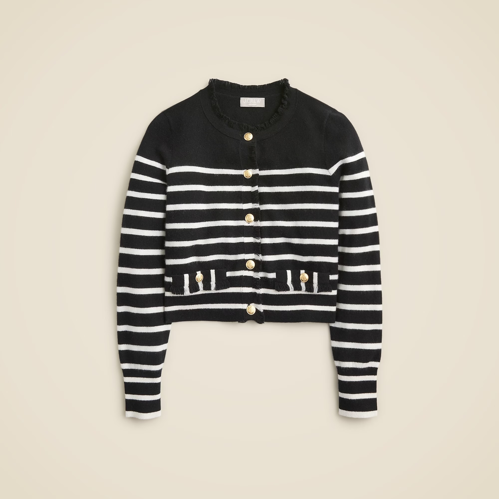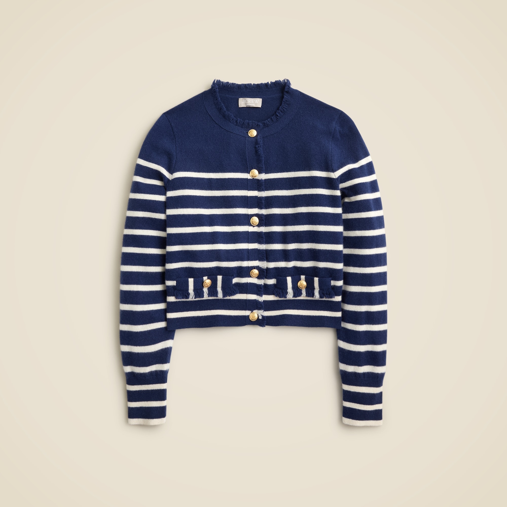 反季特价!Jcrew 羊绒流苏边毛衣女式小香风 针织开衫 金色徽章扣 原价1600+ 现在只要450直邮到手 需手洗