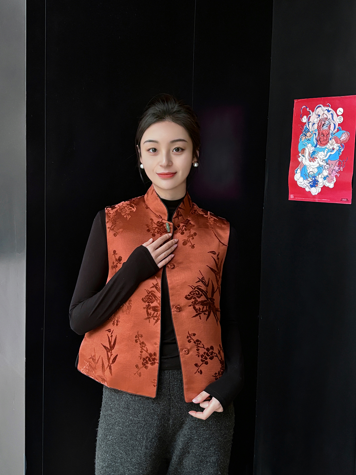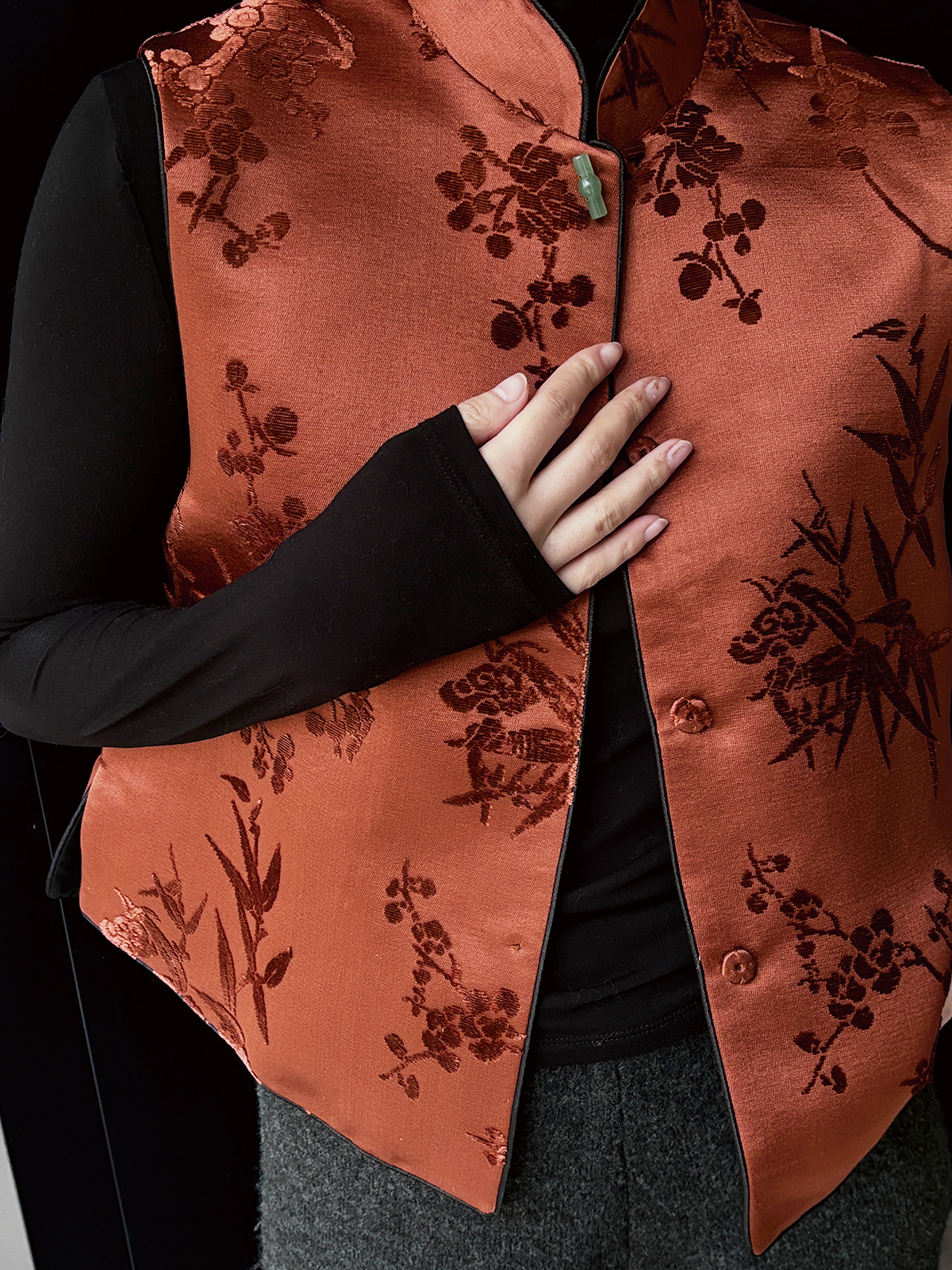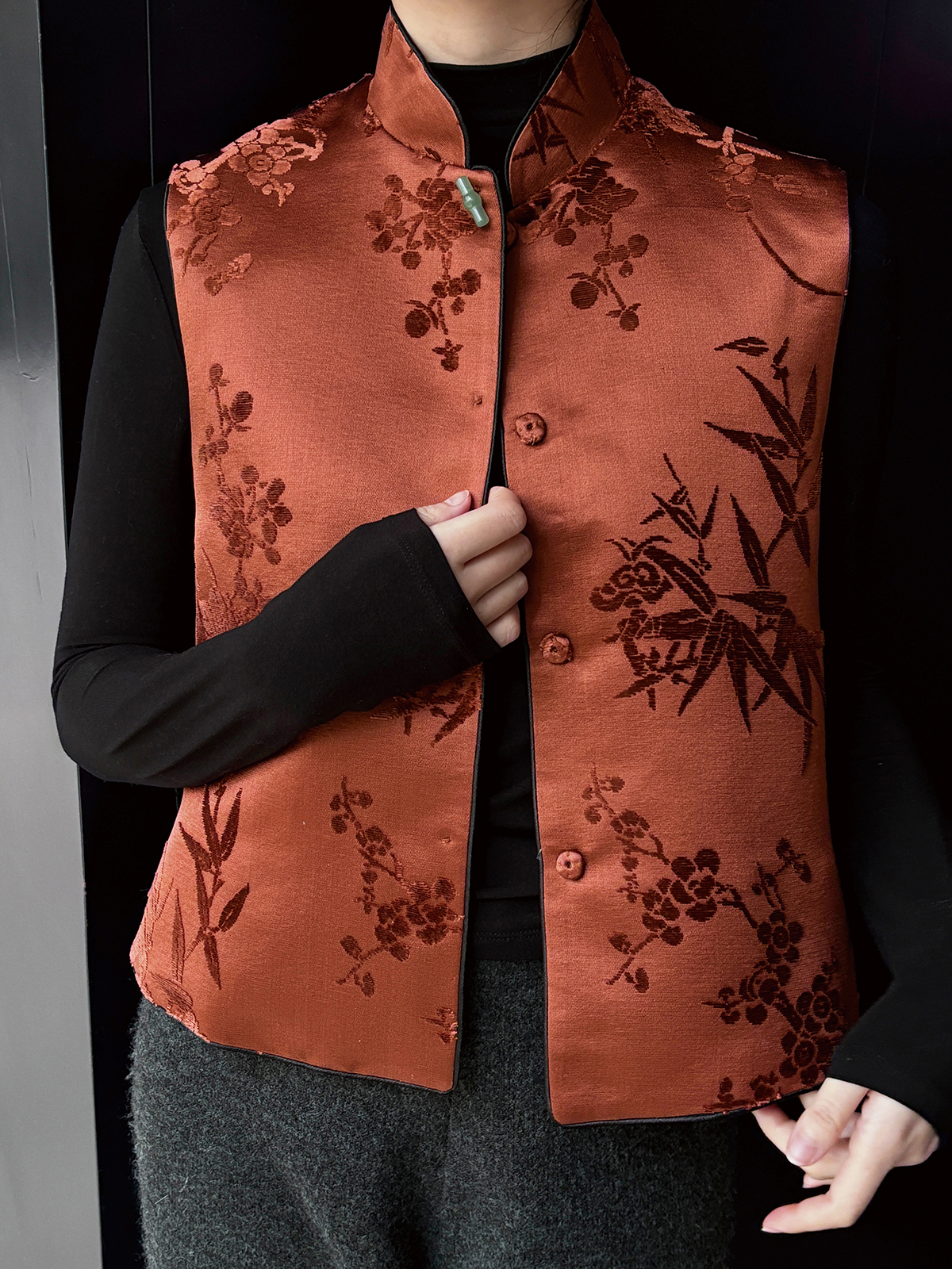 盛唐牡丹|焦糖色漳绒梅兰竹菊马甲