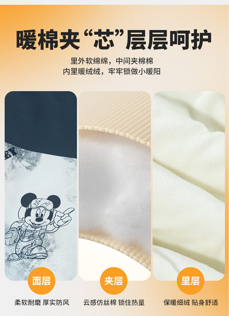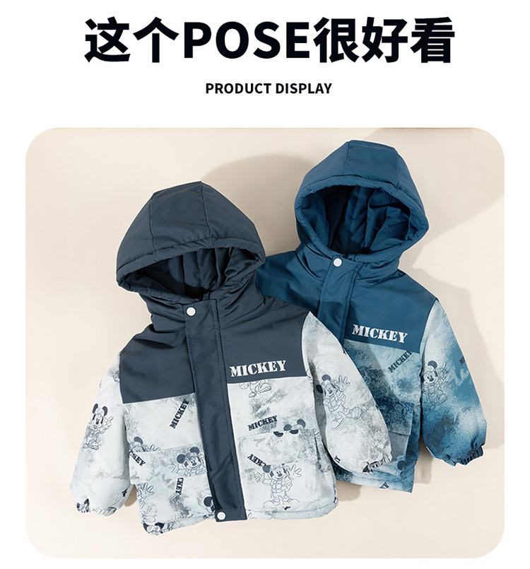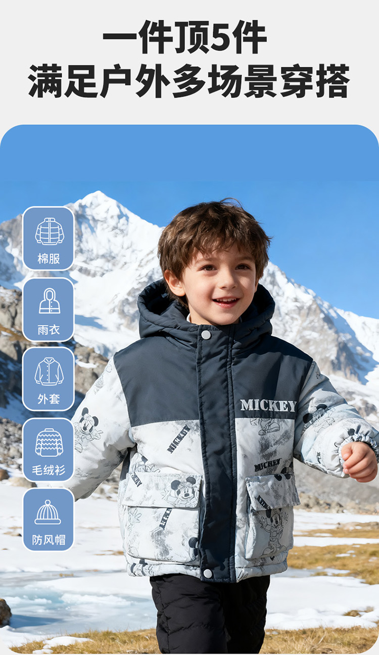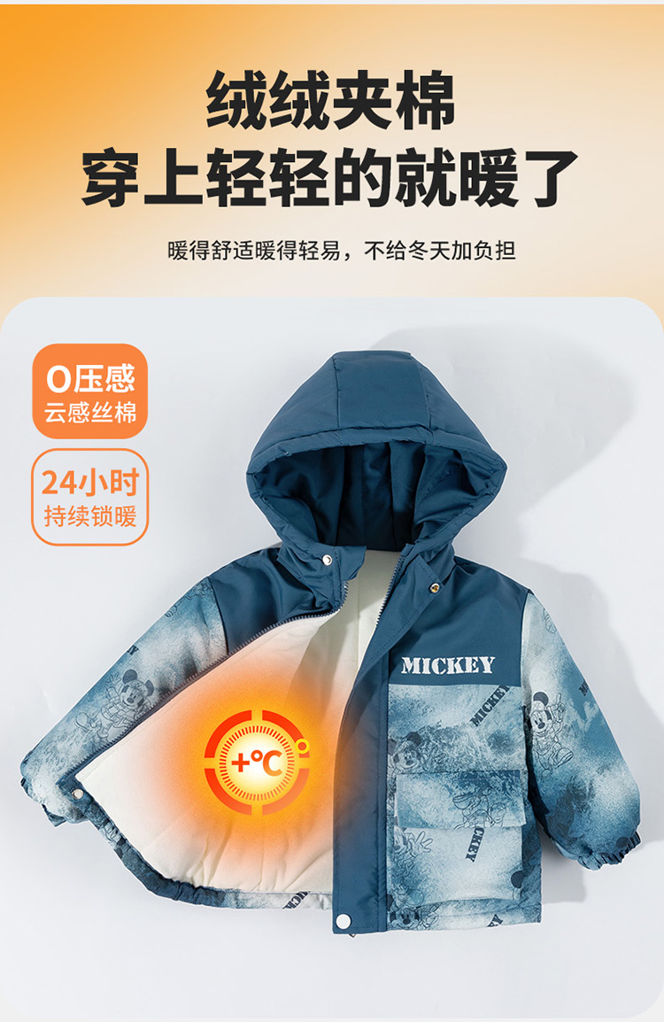 迪士尼【户外登山风】冬季新款夹棉加厚运动休闲外套连帽防风保暖软壳服ZD4ES050