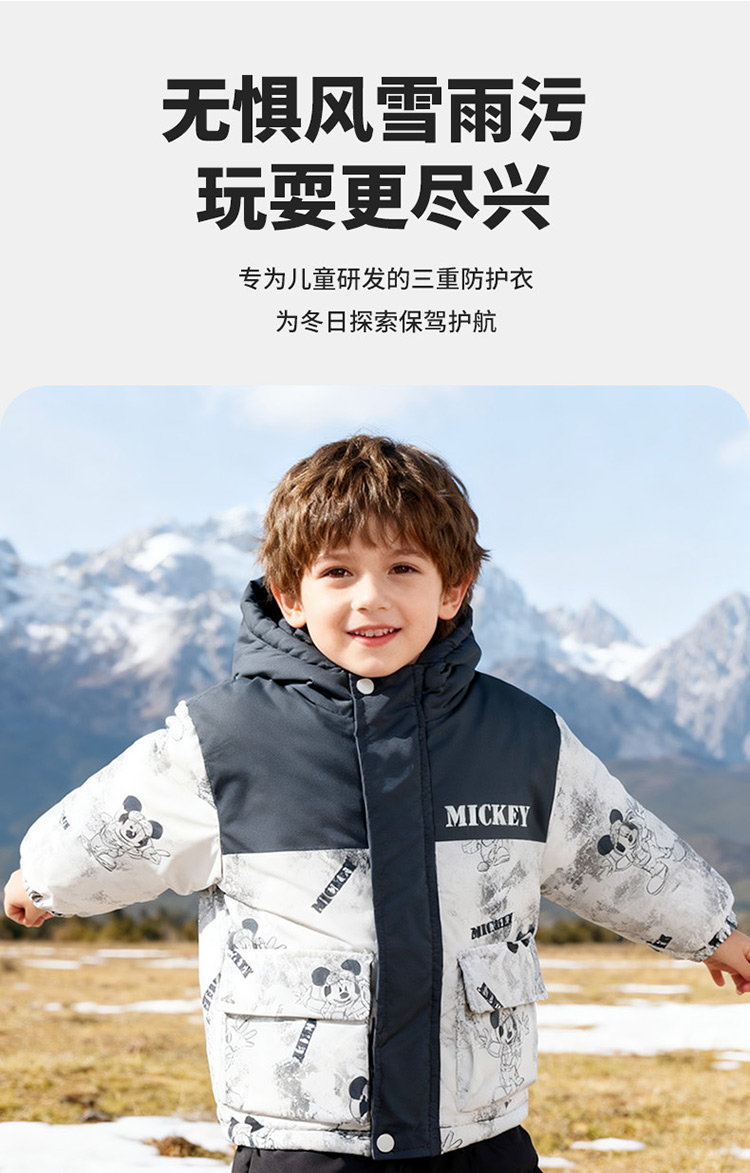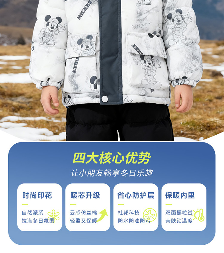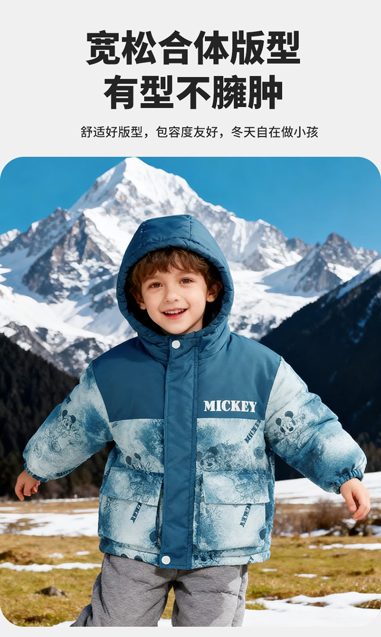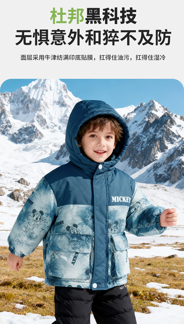 迪士尼【户外登山风】冬季新款夹棉加厚运动休闲外套连帽防风保暖软壳服ZD4ES050
