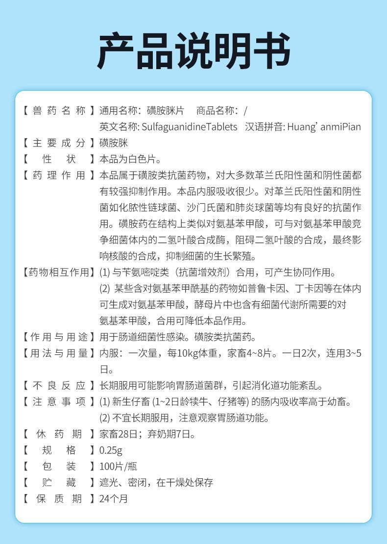 华畜磺胺脒片兽用痢疾肠炎血痢家畜肠道细菌性感染肠炎牛犊便血
