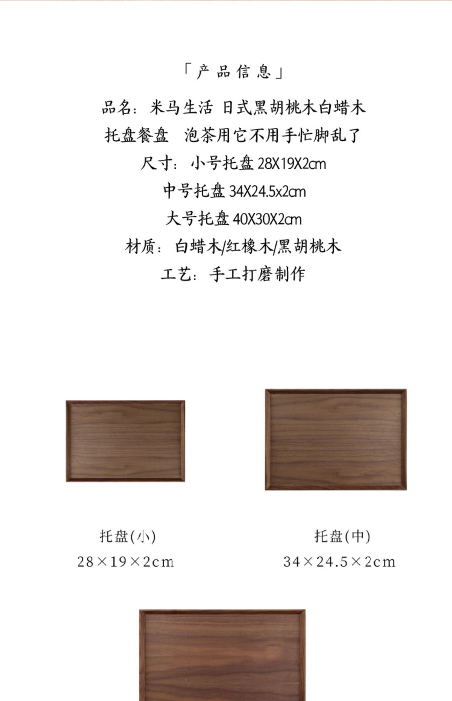 代发 米马生活 日式黑胡桃木白蜡木托盘餐盘泡茶用它不用手忙脚乱了