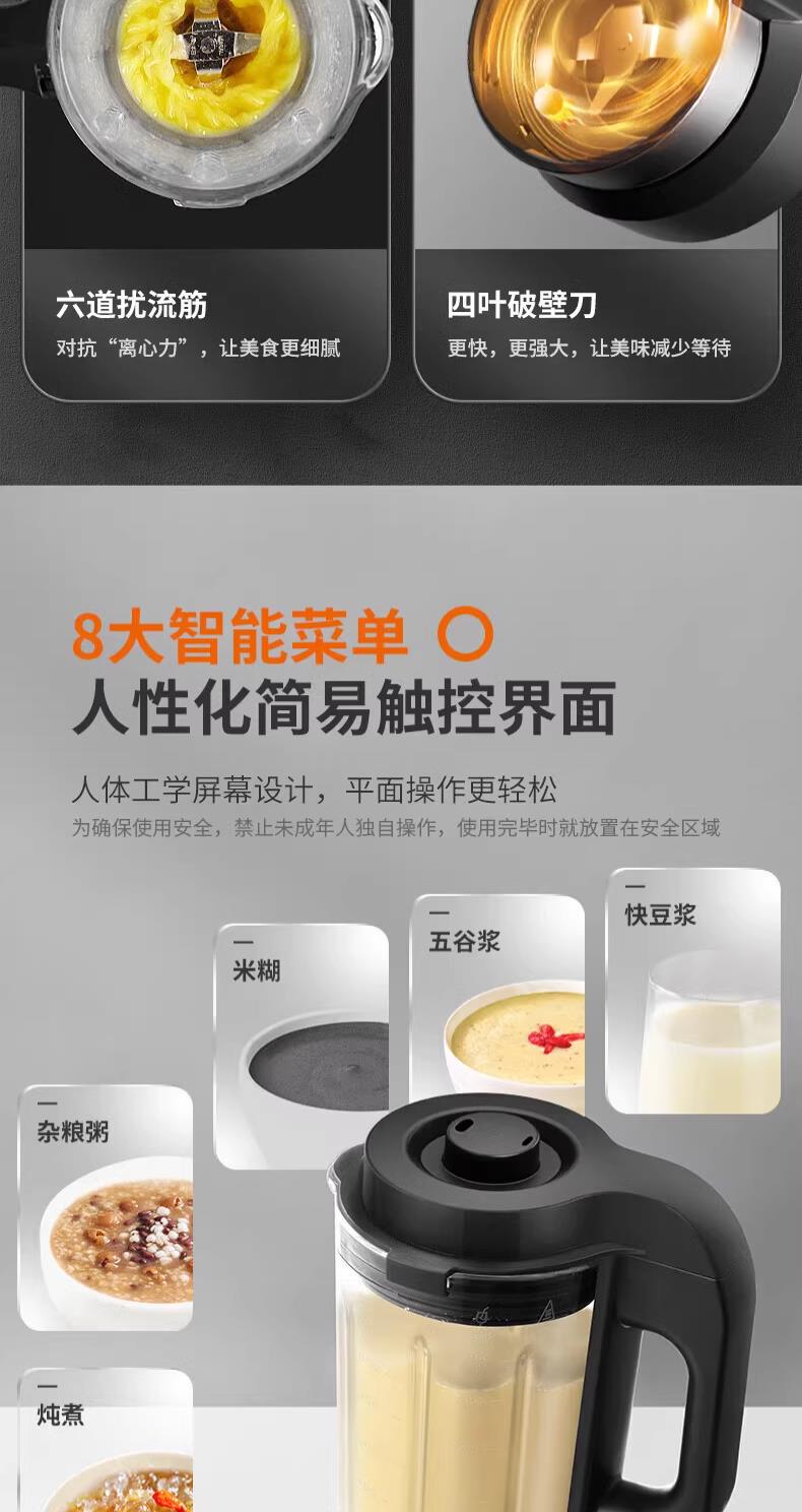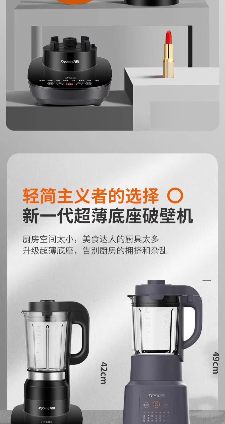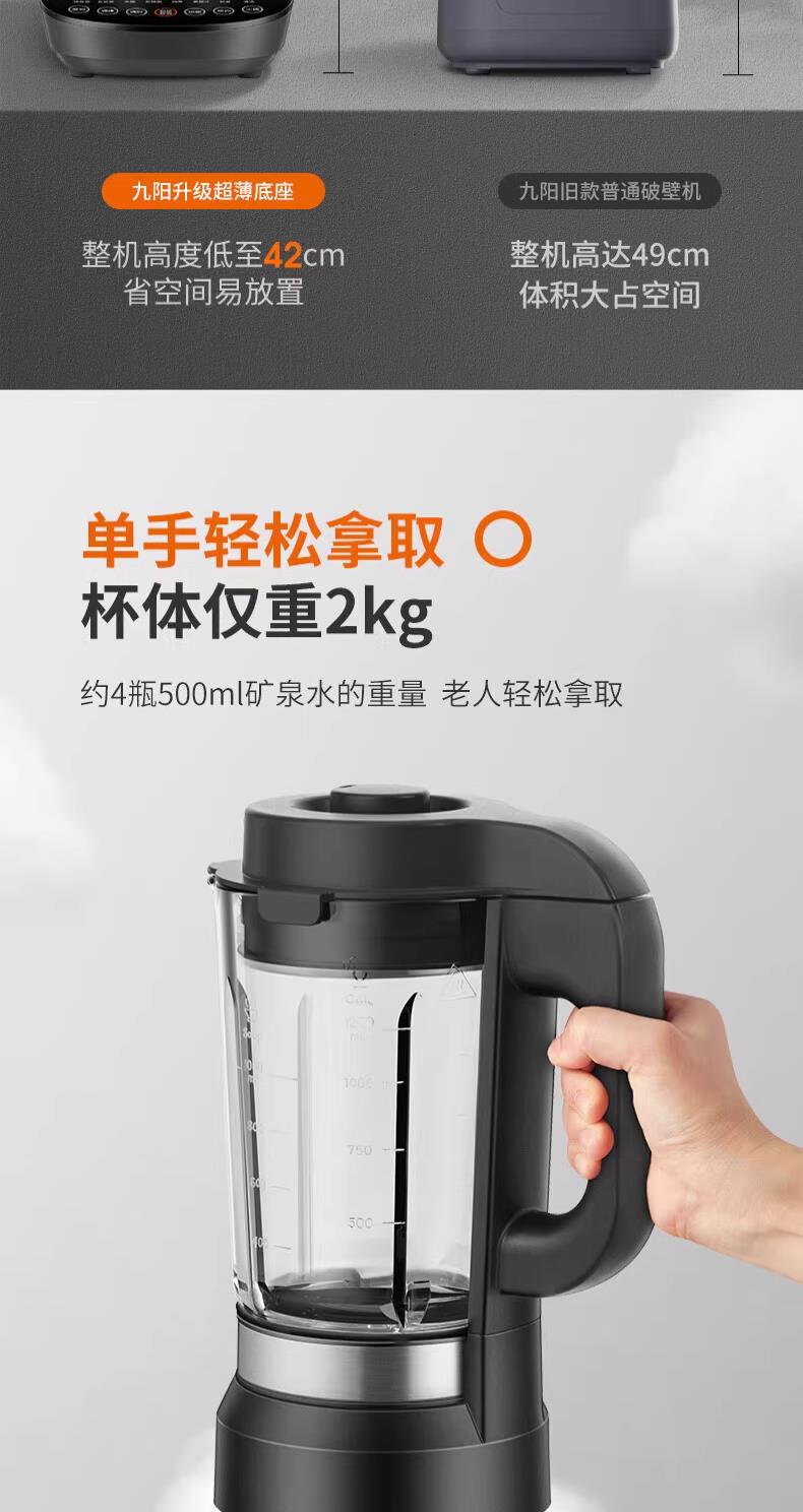 九阳轻薄破壁机1.2L低音家用加热全自动豆浆机辅食多用榨汁料理机
