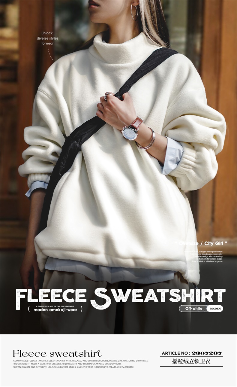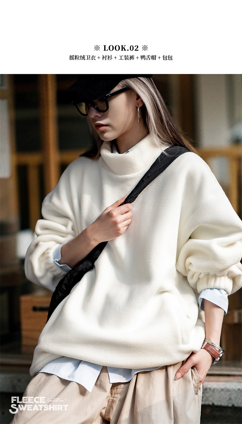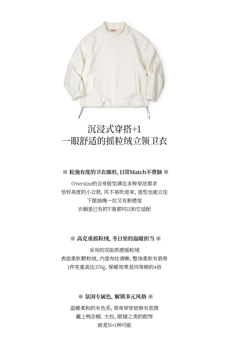 马登美式立领摇粒绒卫衣秋冬慵懒风oversize宽松长袖上衣女
