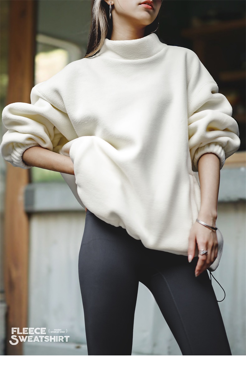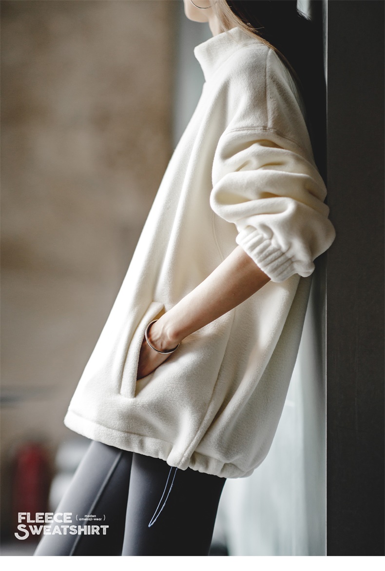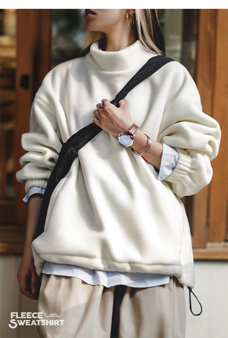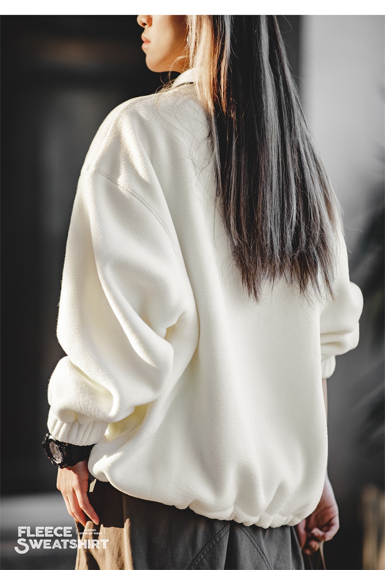 马登美式立领摇粒绒卫衣秋冬慵懒风oversize宽松长袖上衣女