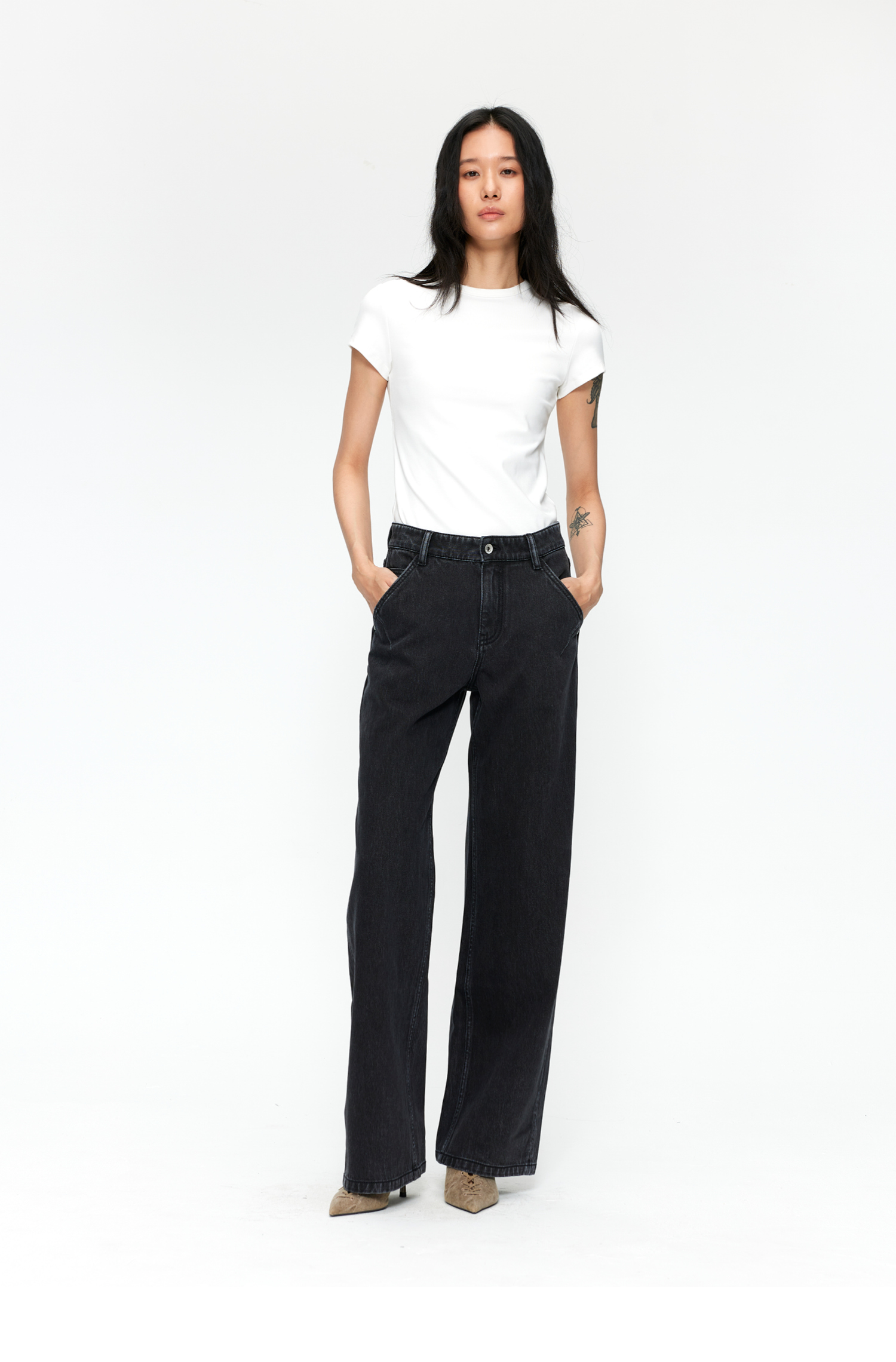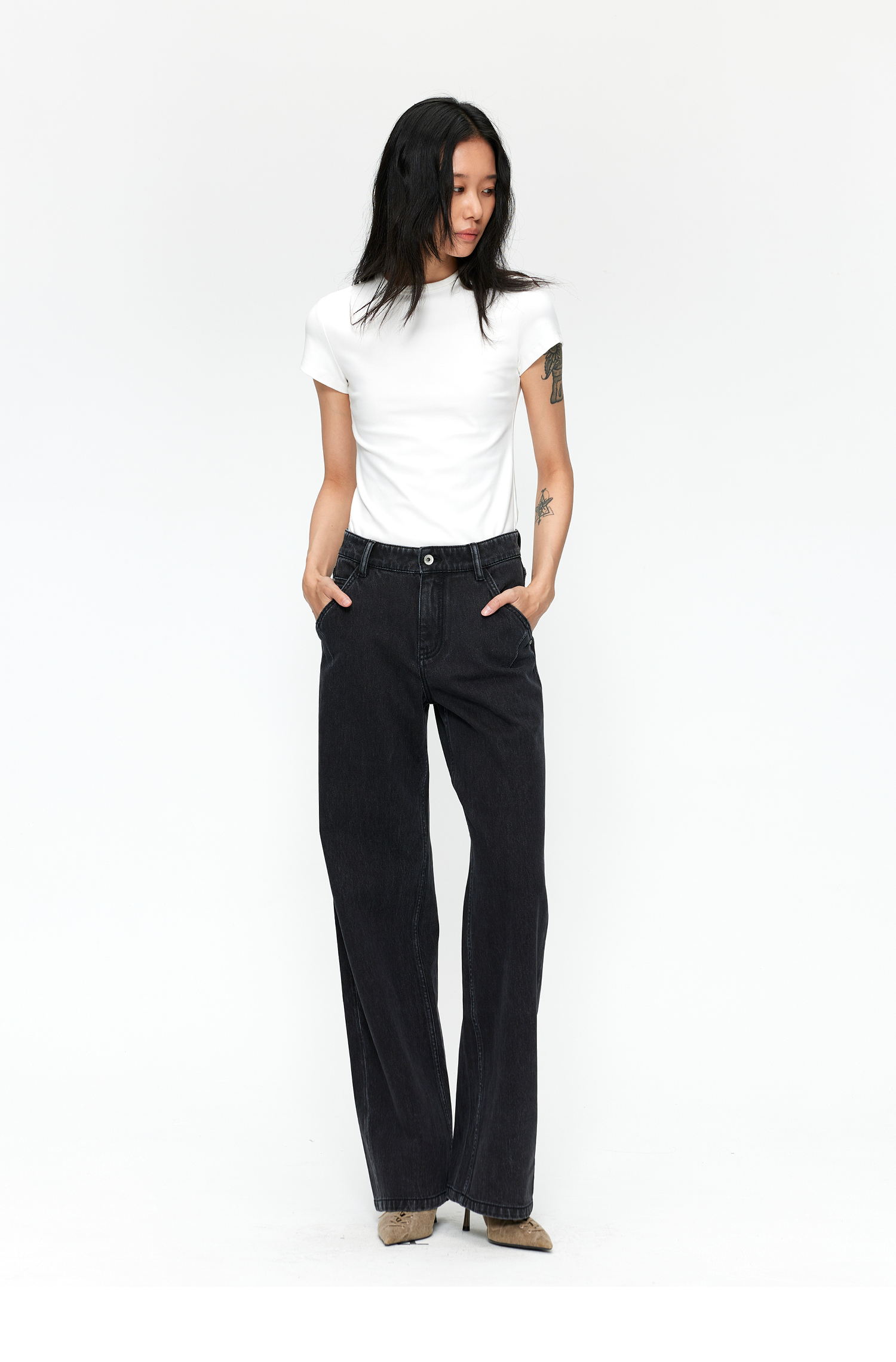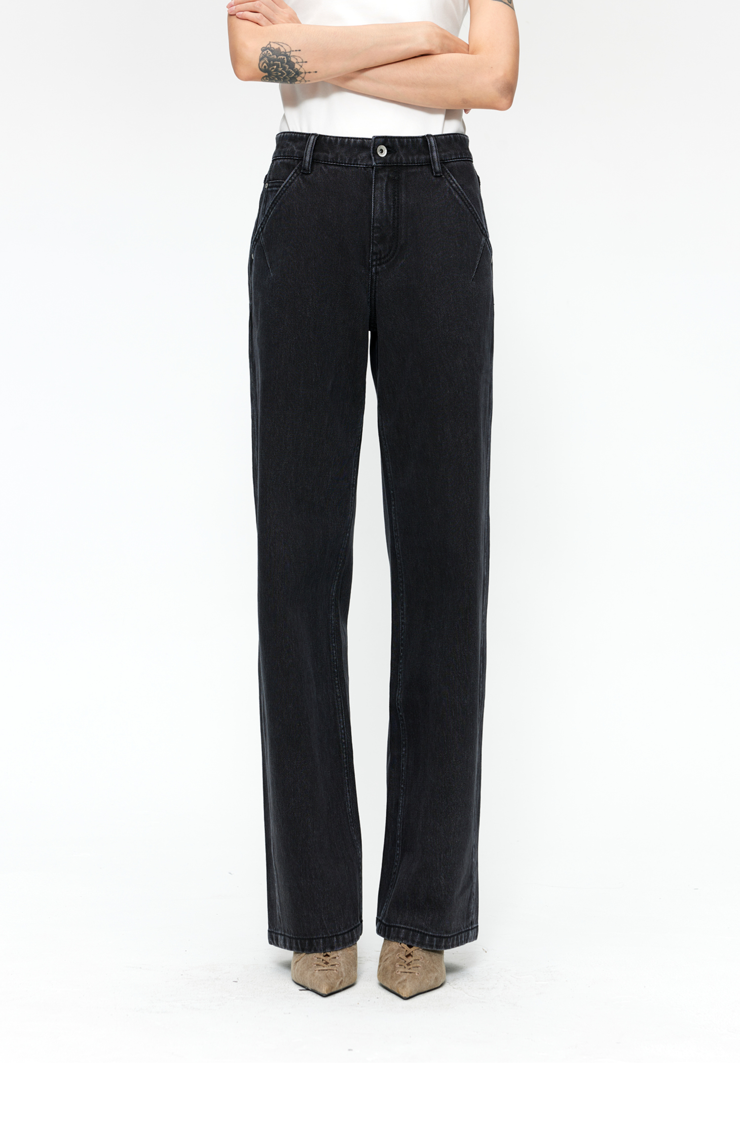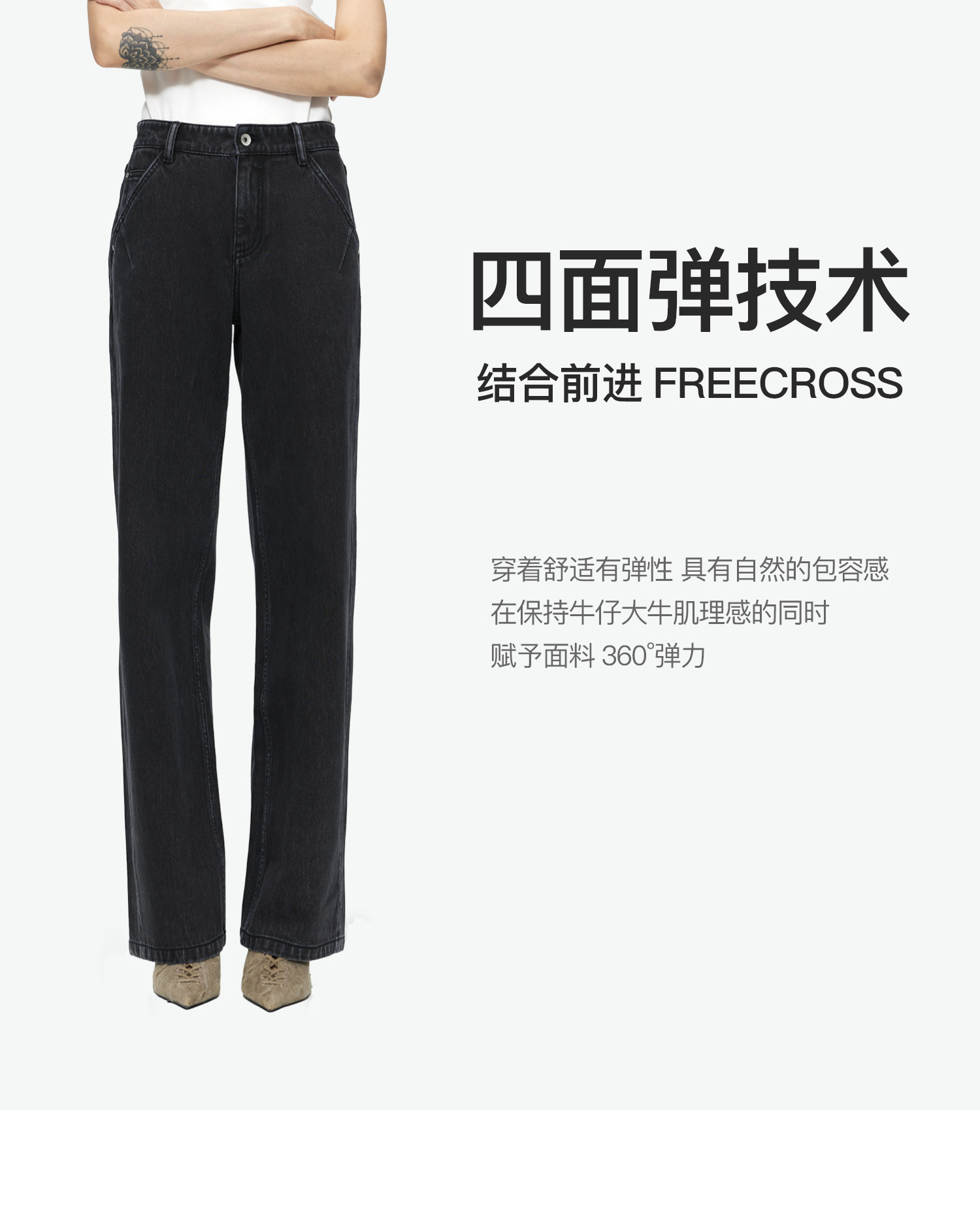 素舶 S1 四面弹合身直筒牛仔裤 前进FreeCross 水洗黑原牛中低腰