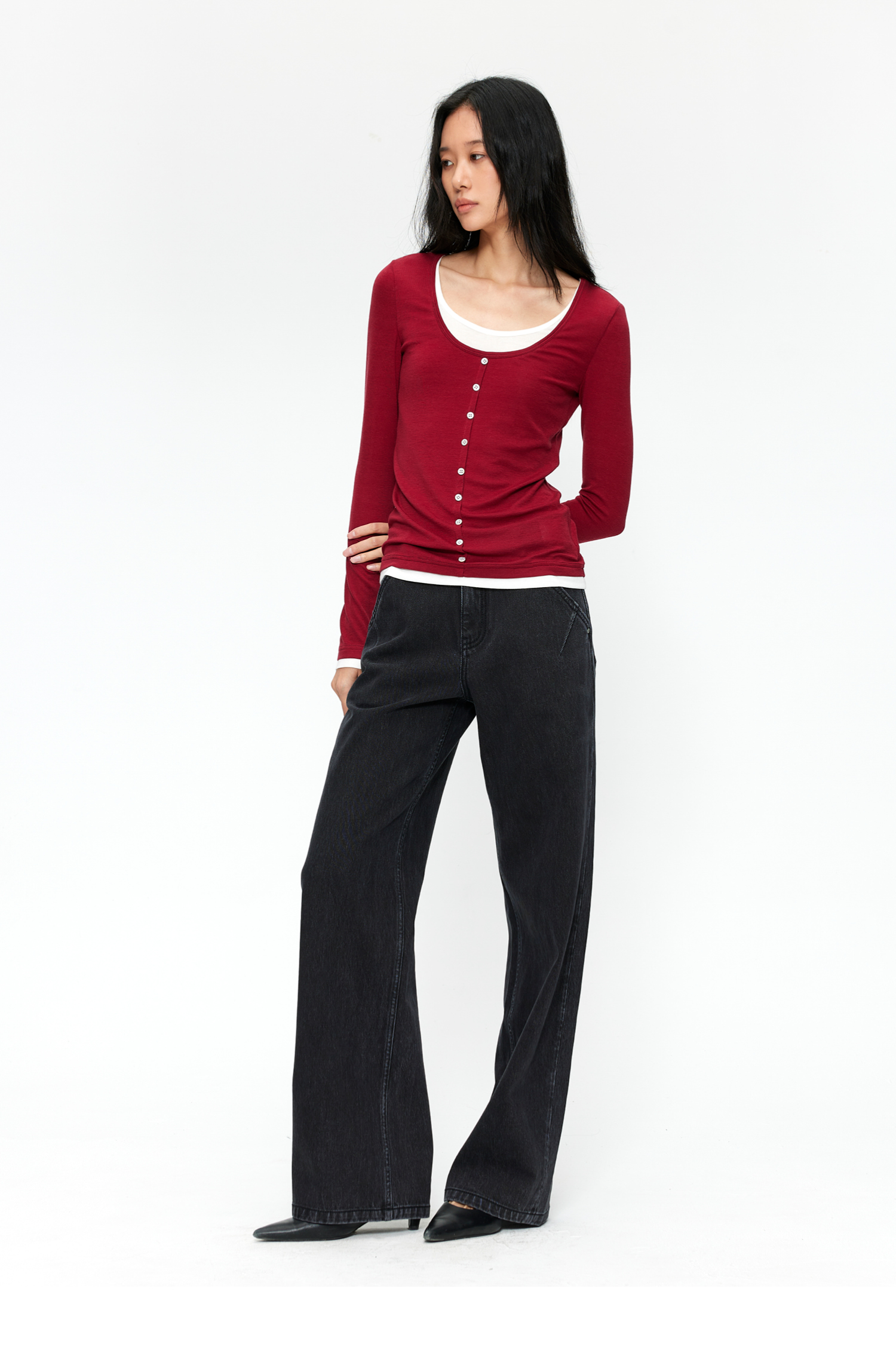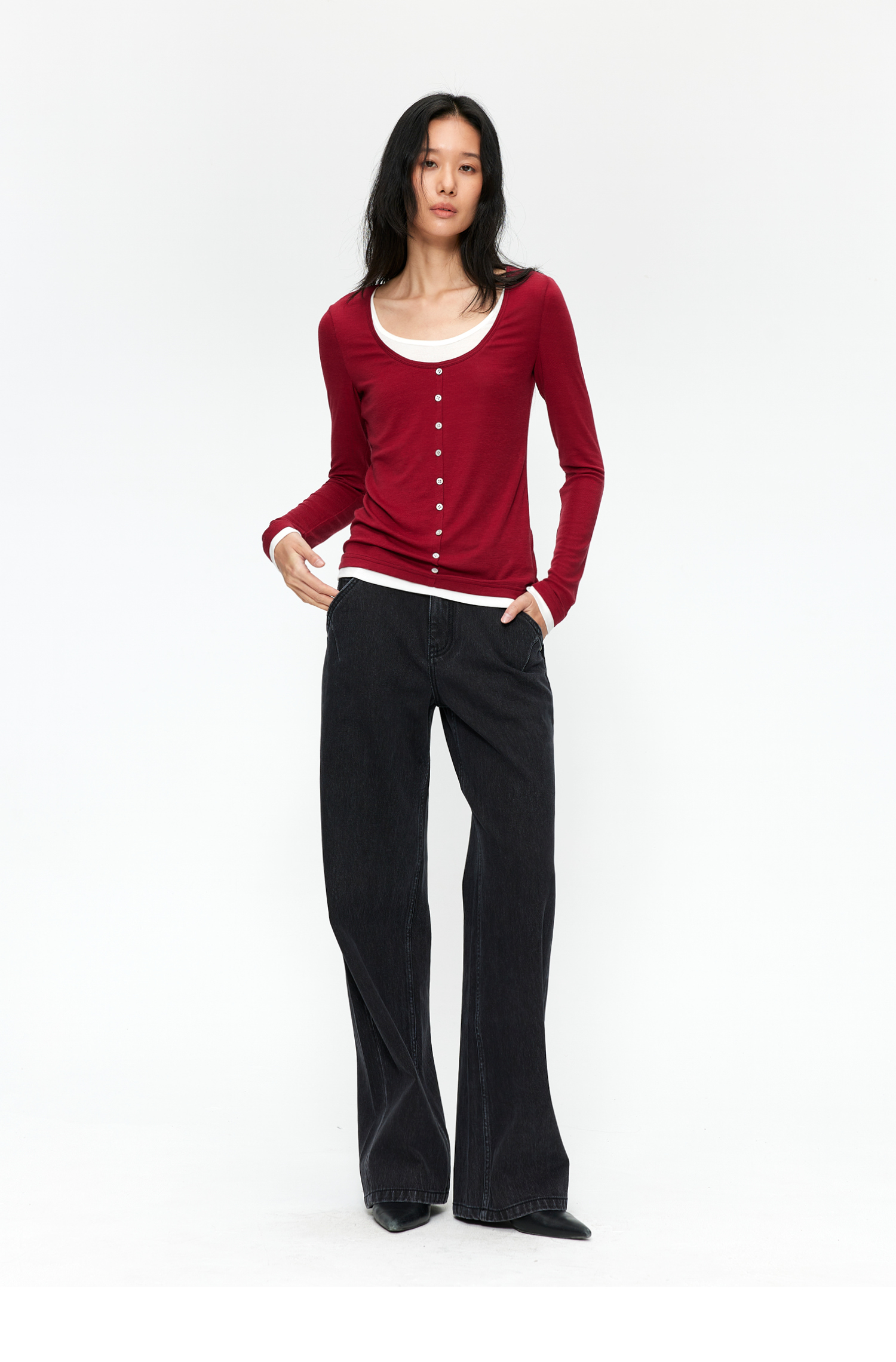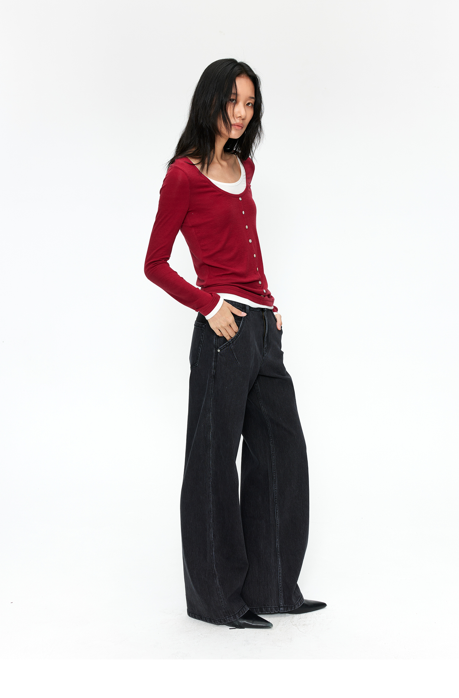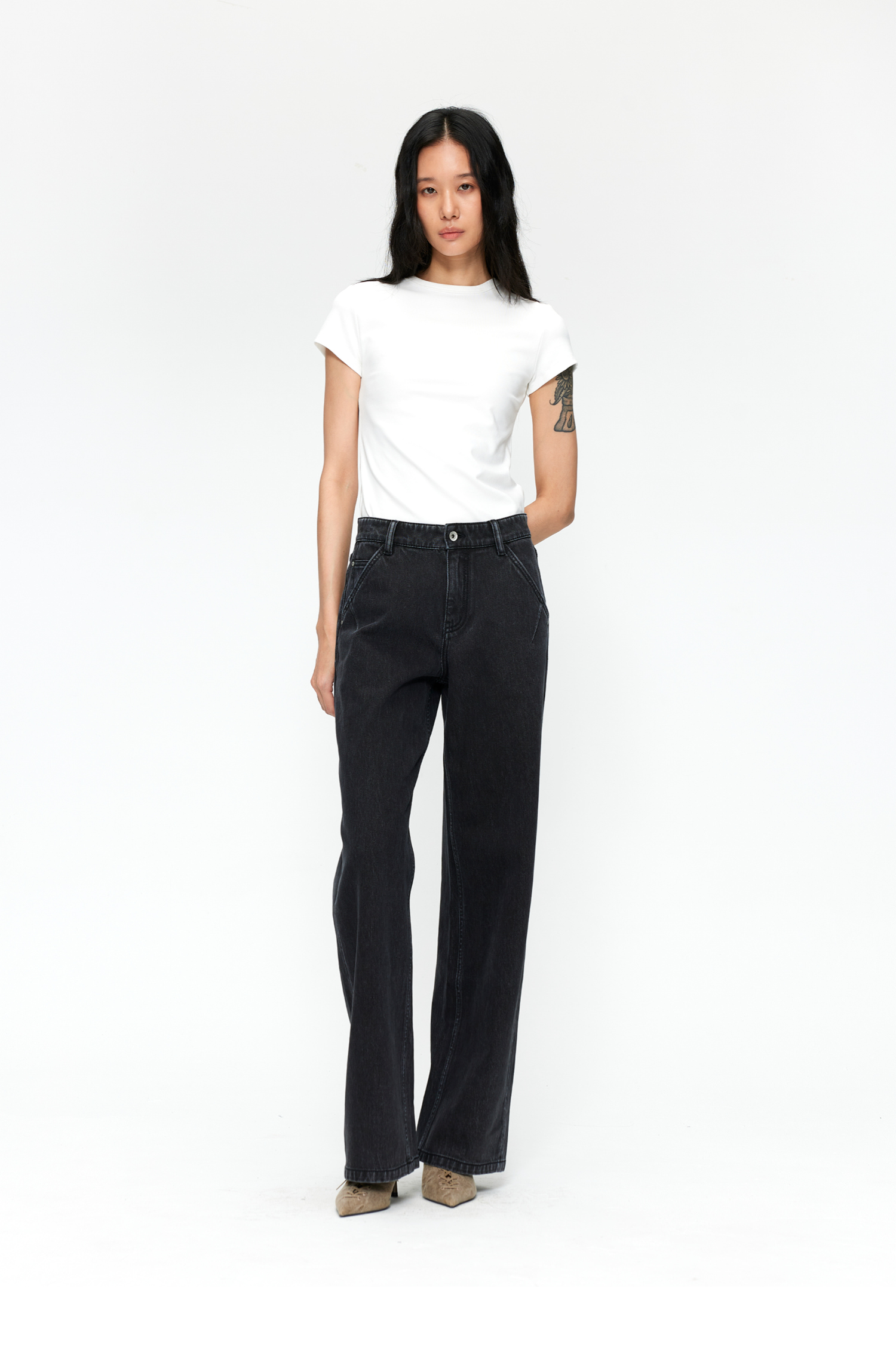 素舶 S1 四面弹合身直筒牛仔裤 前进FreeCross 水洗黑原牛中低腰