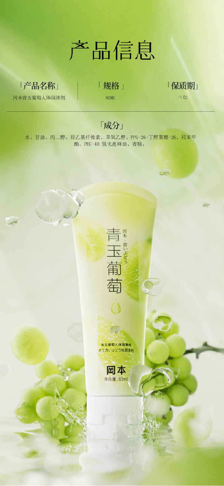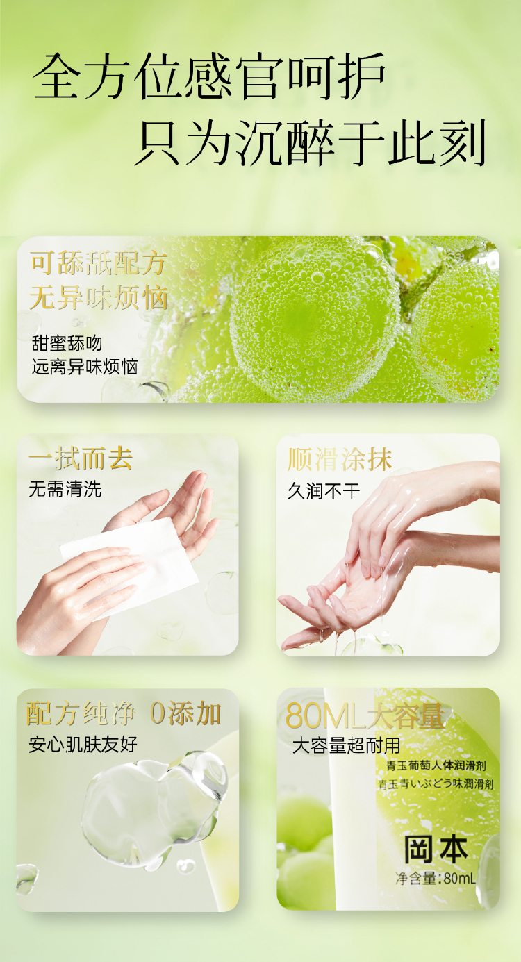 冈本青玉葡萄果味润滑液可舔免洗夫妻润滑油80ml私处成人情趣用品