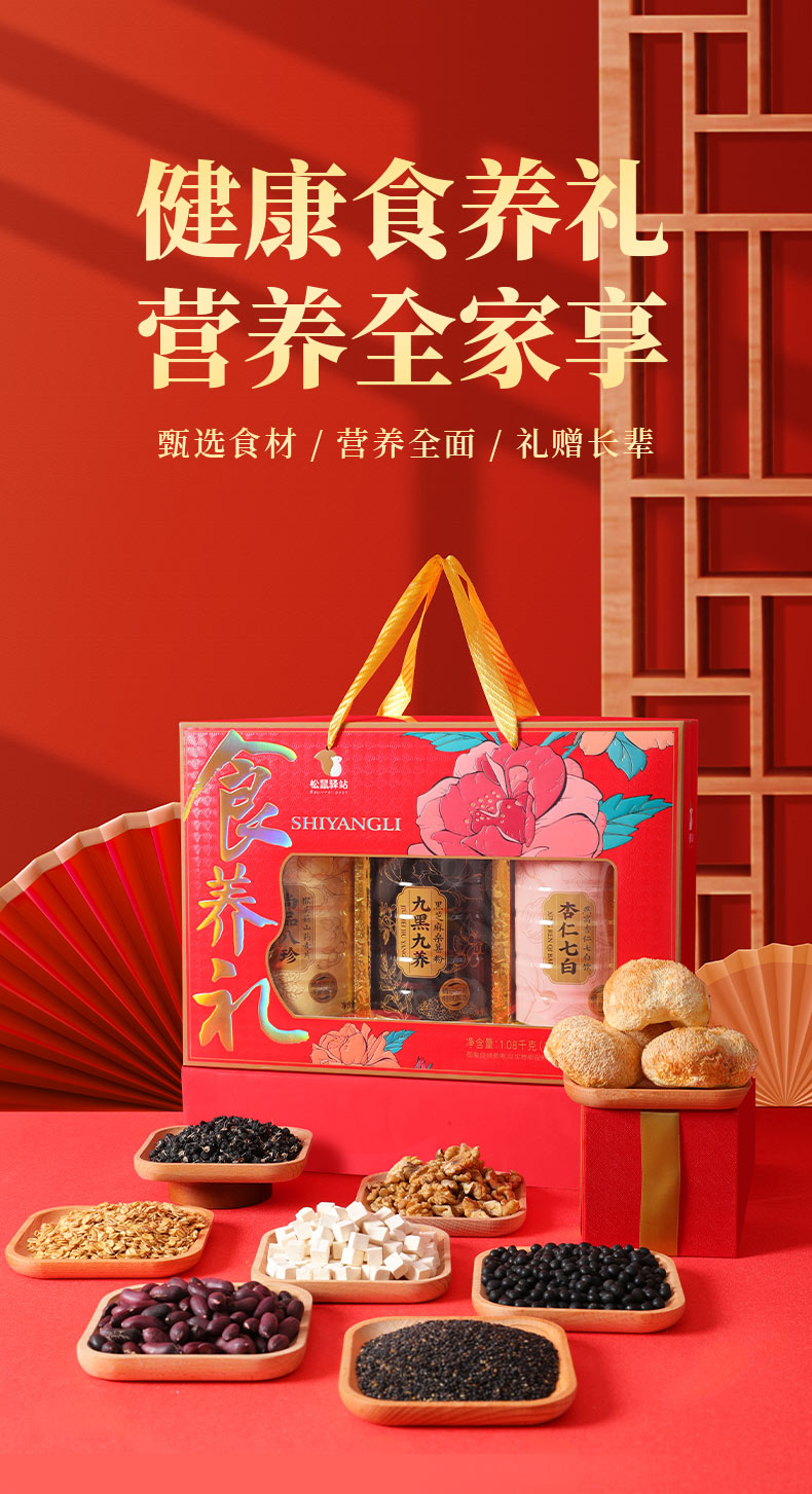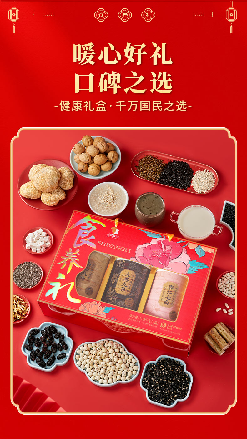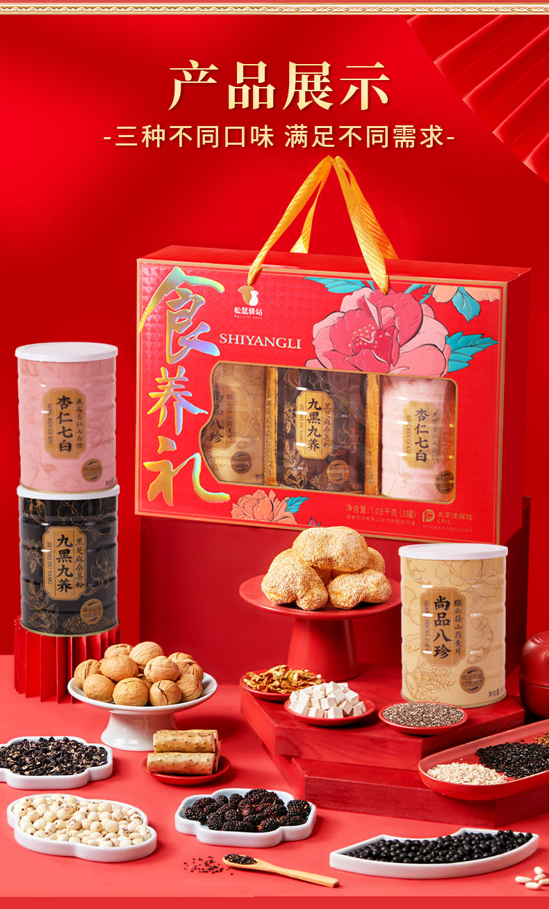【超值3罐礼盒装】松鼠驿站 食养礼全家福健康大礼盒 猴头菇山药麦片/黑芝麻桑葚粉/燕窝杏仁七白饮 健康食养 走亲戚送长辈 1.08kg/盒