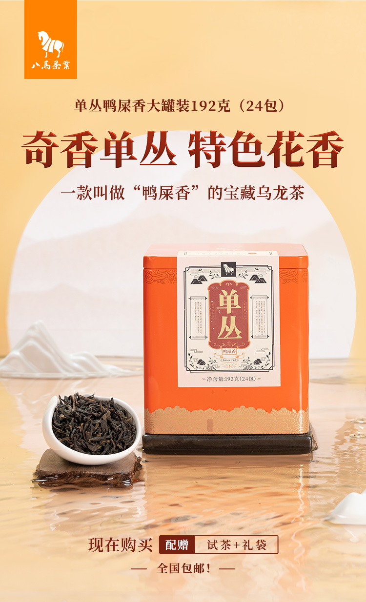 八马茶业丨潮州单丛茶鸭屎香乌龙茶条形单丛口粮茶自饮罐装192g
