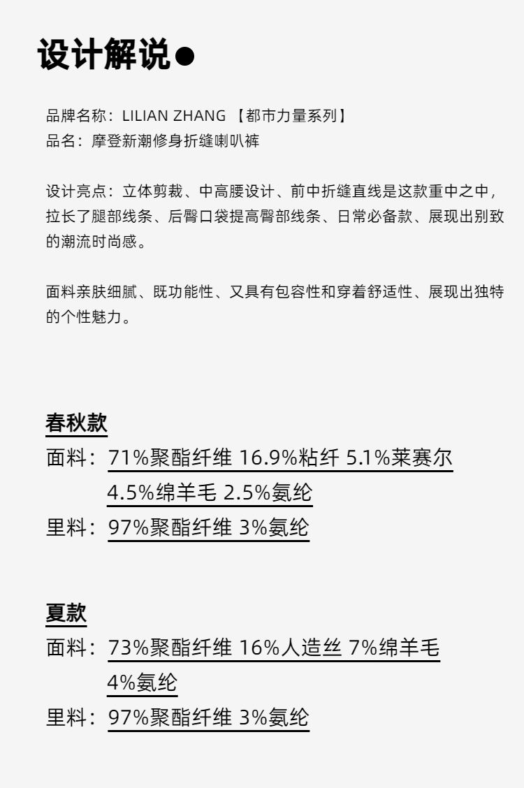 C系列—都市力量、摩登新潮、——修身折缝喇叭裤 2304112+2504005