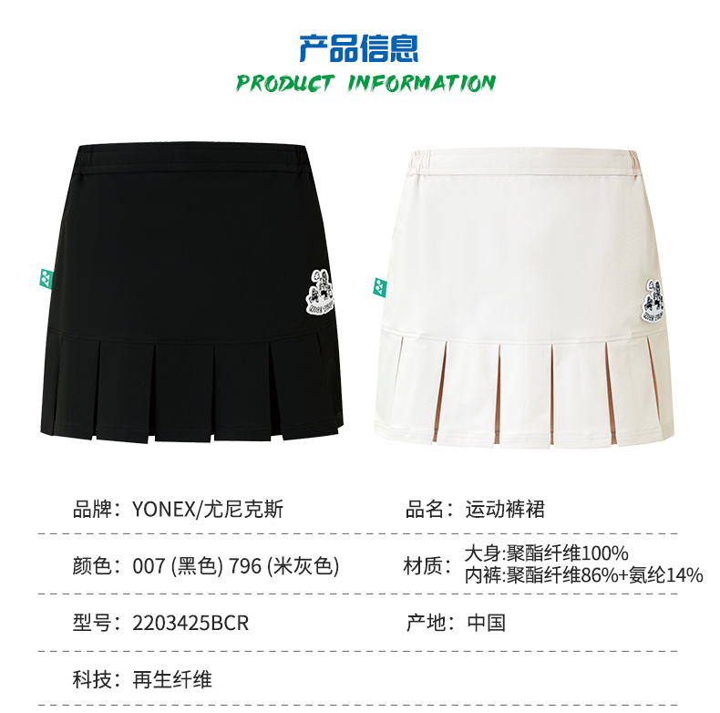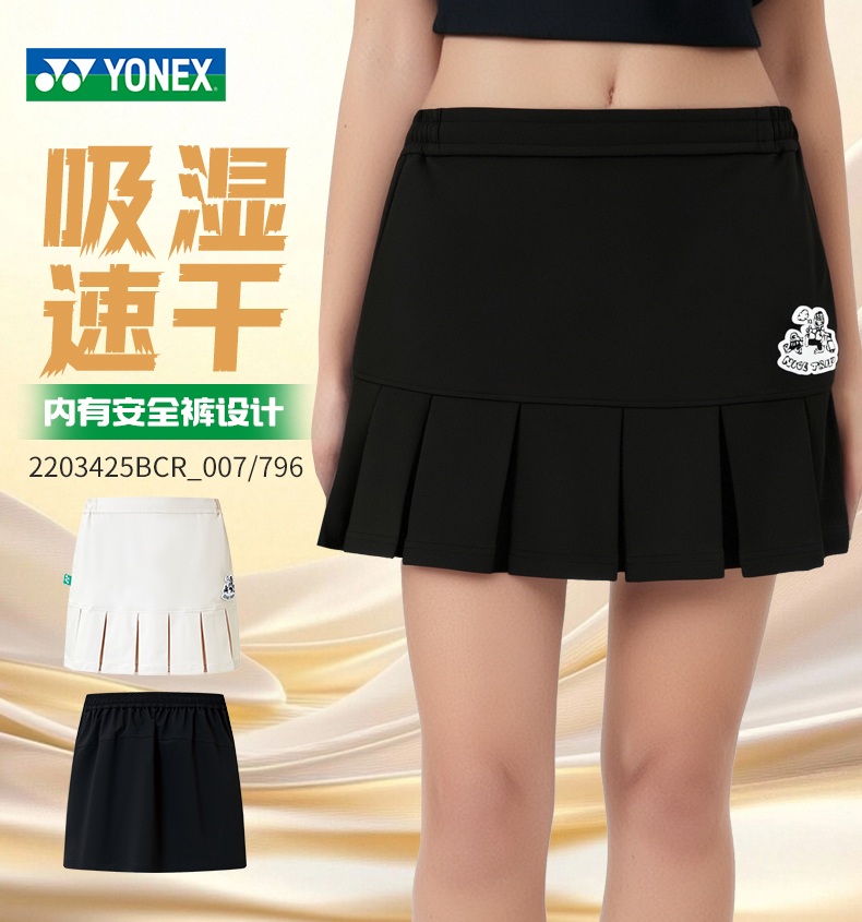 YONEX新款尤尼克斯羽毛球服YY女运动短裙速干百褶裙网羽2203425BCR
