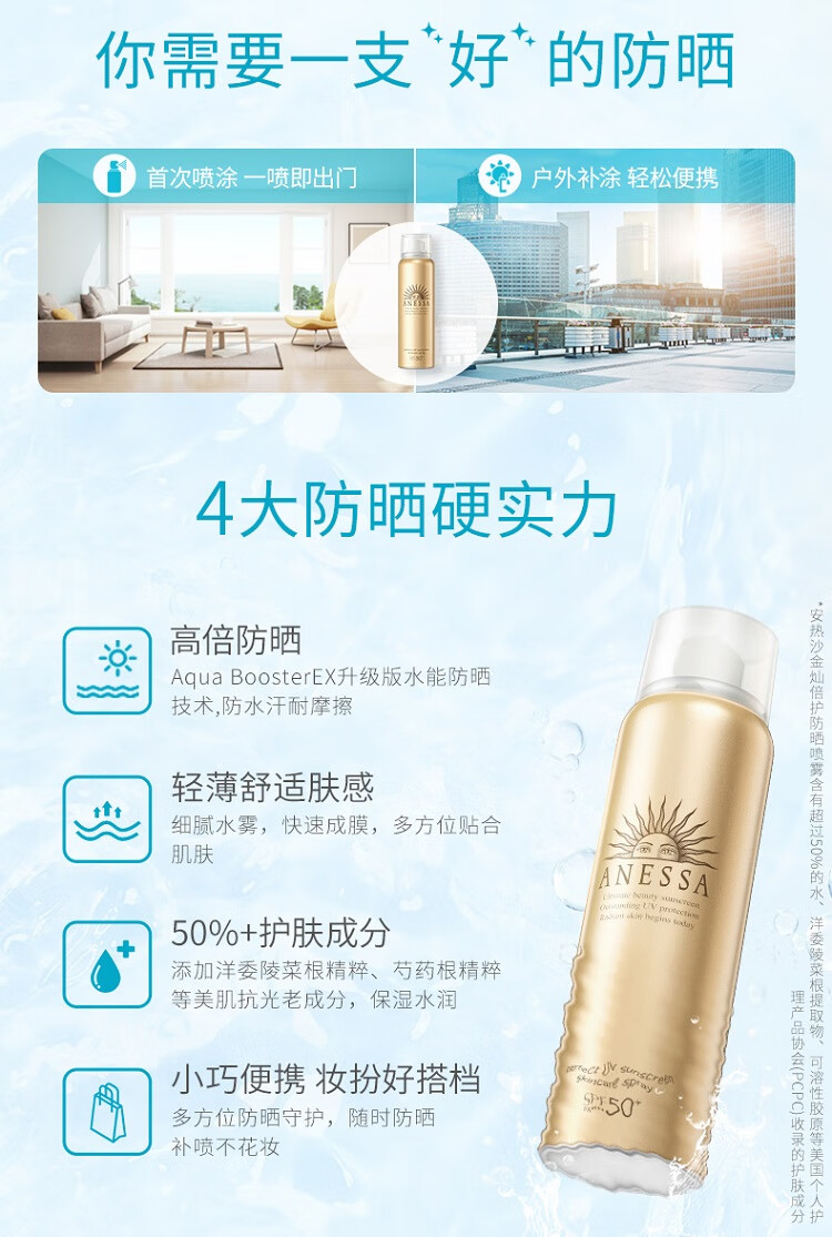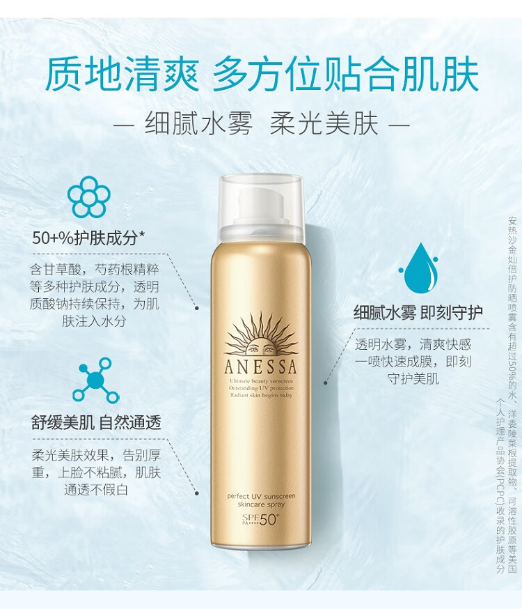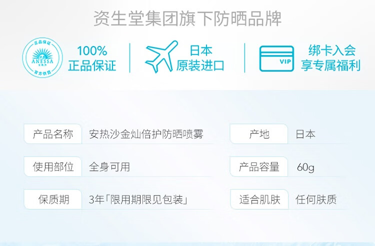 安热沙金灿倍护防晒喷雾SPF50+PA++++60g【30172522】