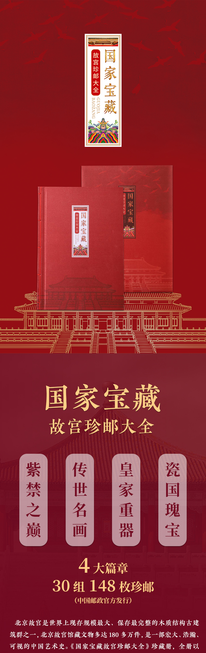 《国·家宝藏》故宫珍邮大全,收官之作,涵盖宫殿建筑、古画鉴赏、guo家器具以及珍贵瓷器4个领域相关珍邮,一共有30组148枚珍邮!