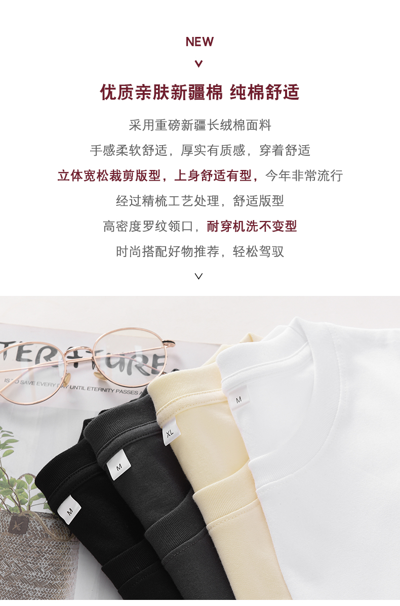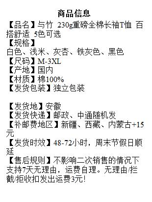 经典百搭「加购3件到手99元」与竹 230g重磅全棉长袖T恤 百搭舒适 5色可选 男女同款