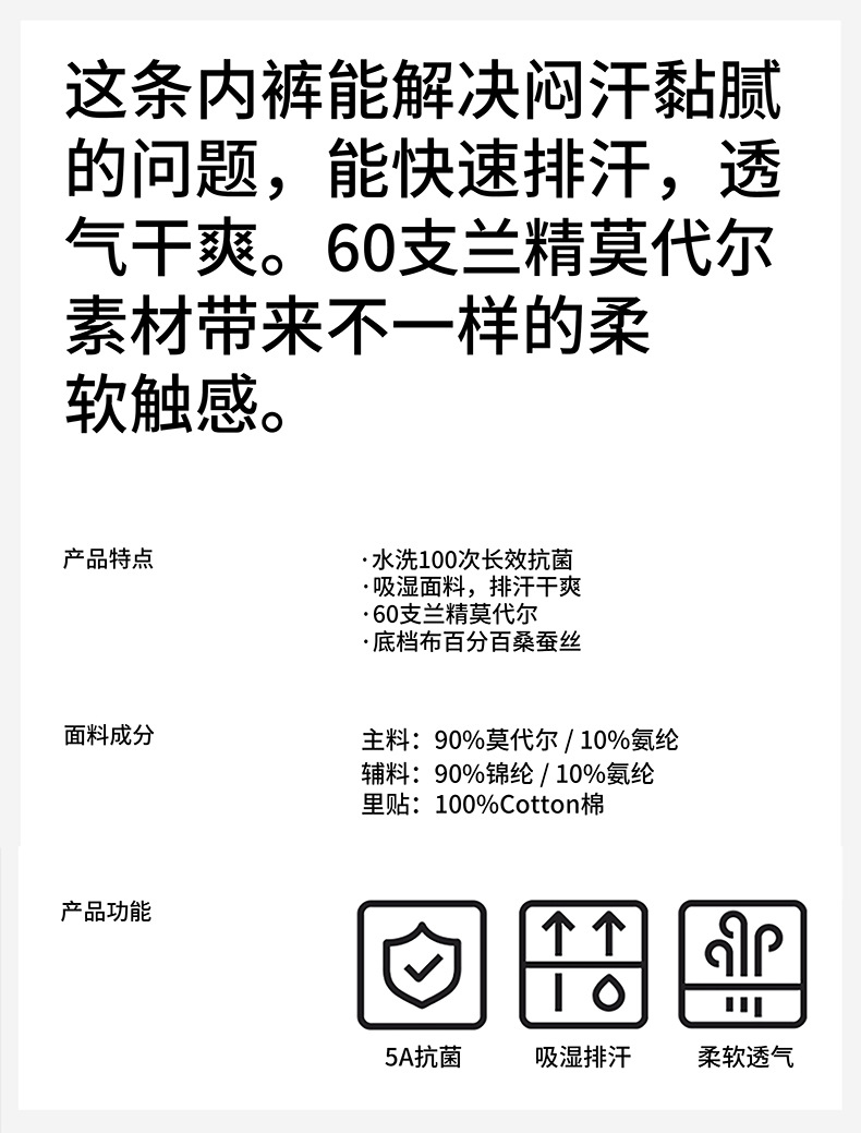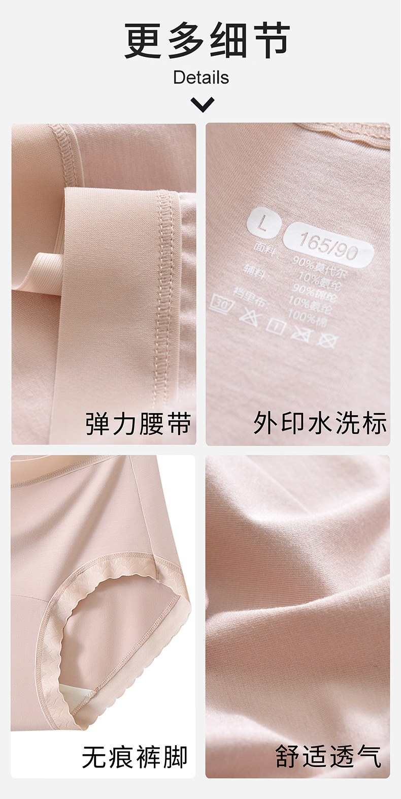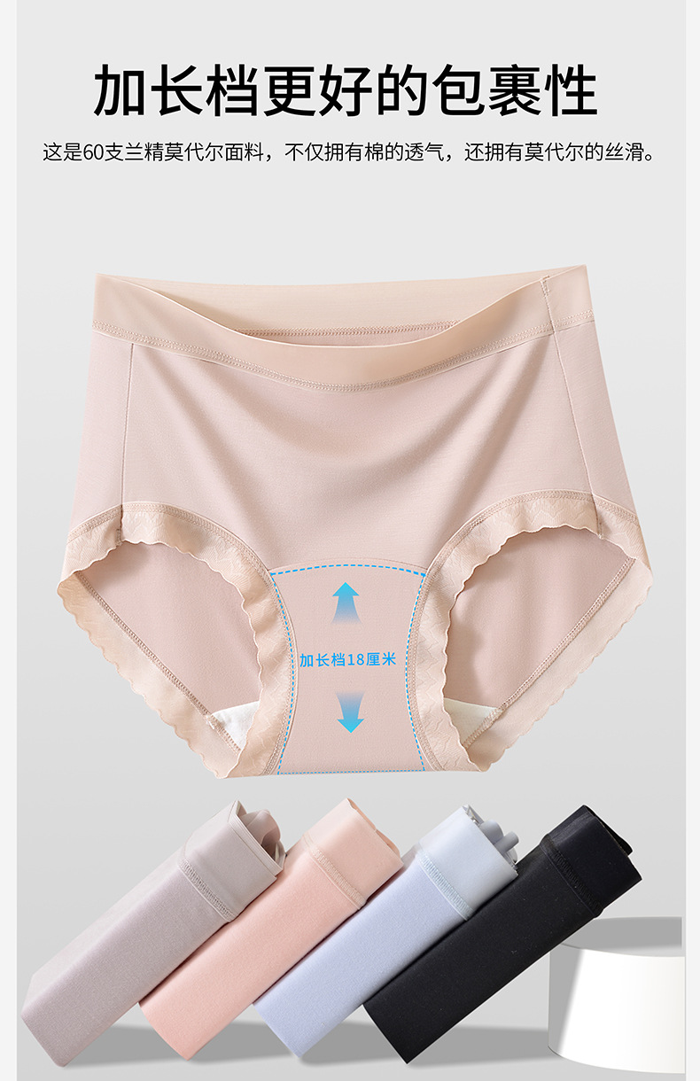 【限时3条装!加长裆 更舒适】新60S兰精莫代尔内裤女7A纯棉抗菌裆夏季薄款无痕透气女生三角裤胖MM