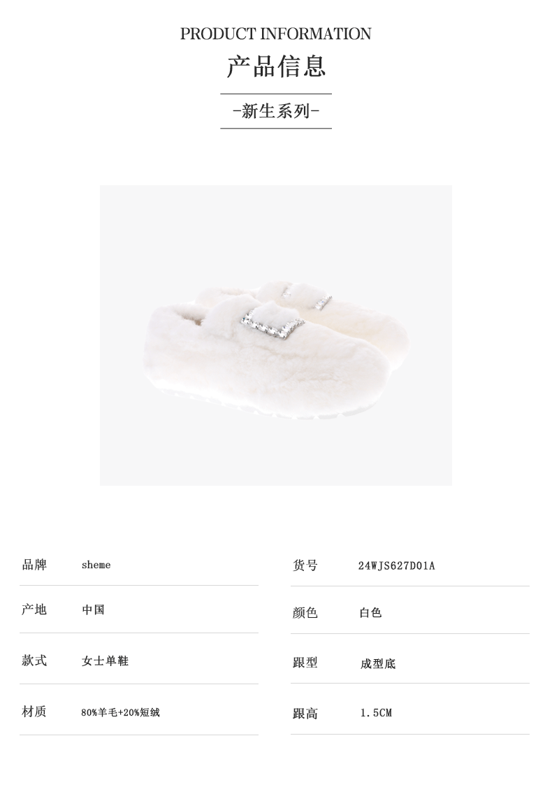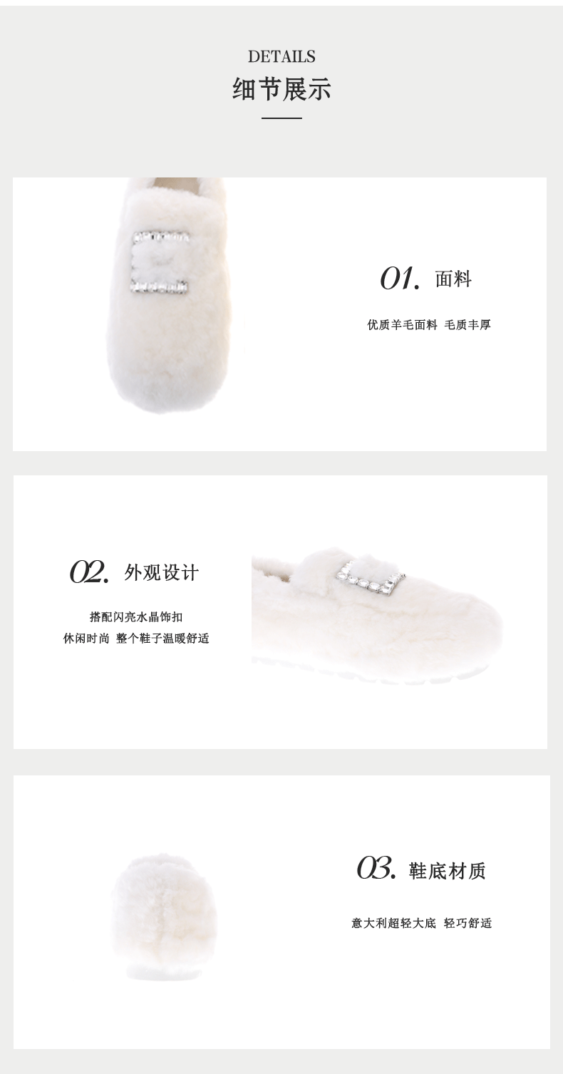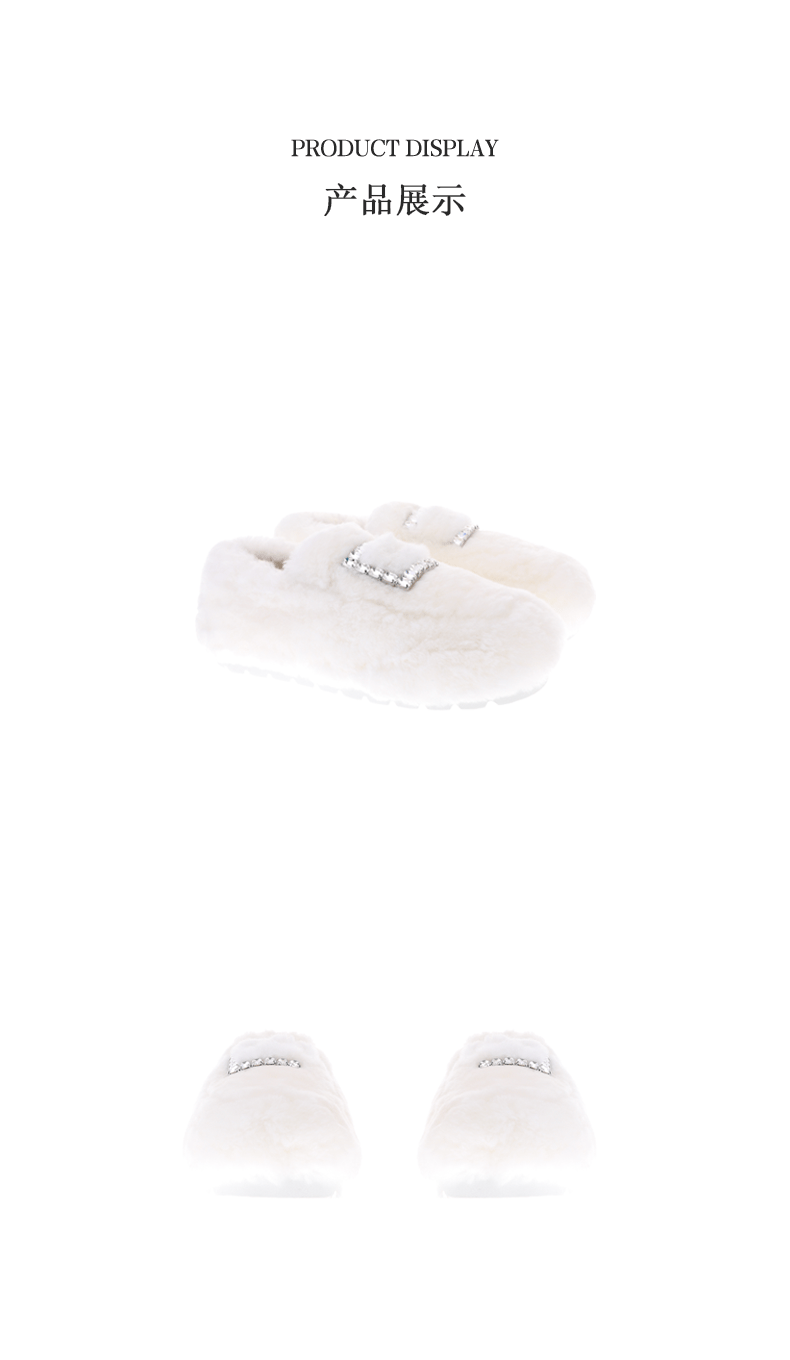 sheme新生系列丰厚羊毛E型水晶扣件点缀温暖舒适女士乐福鞋可定制
