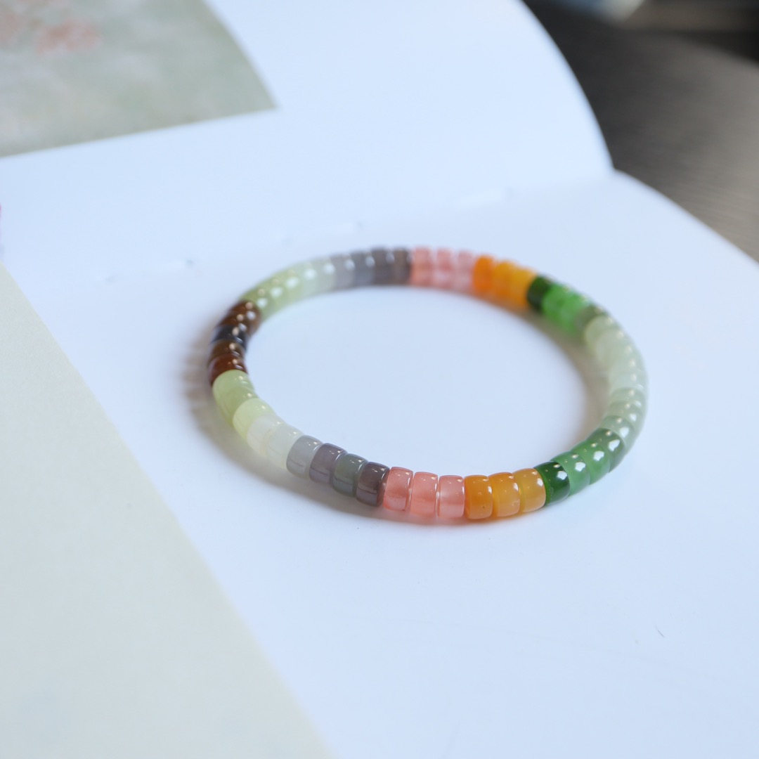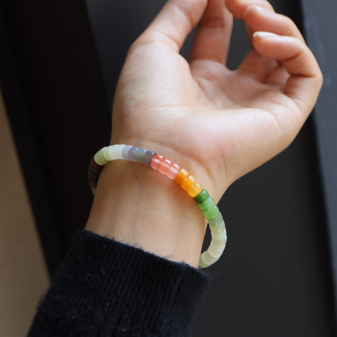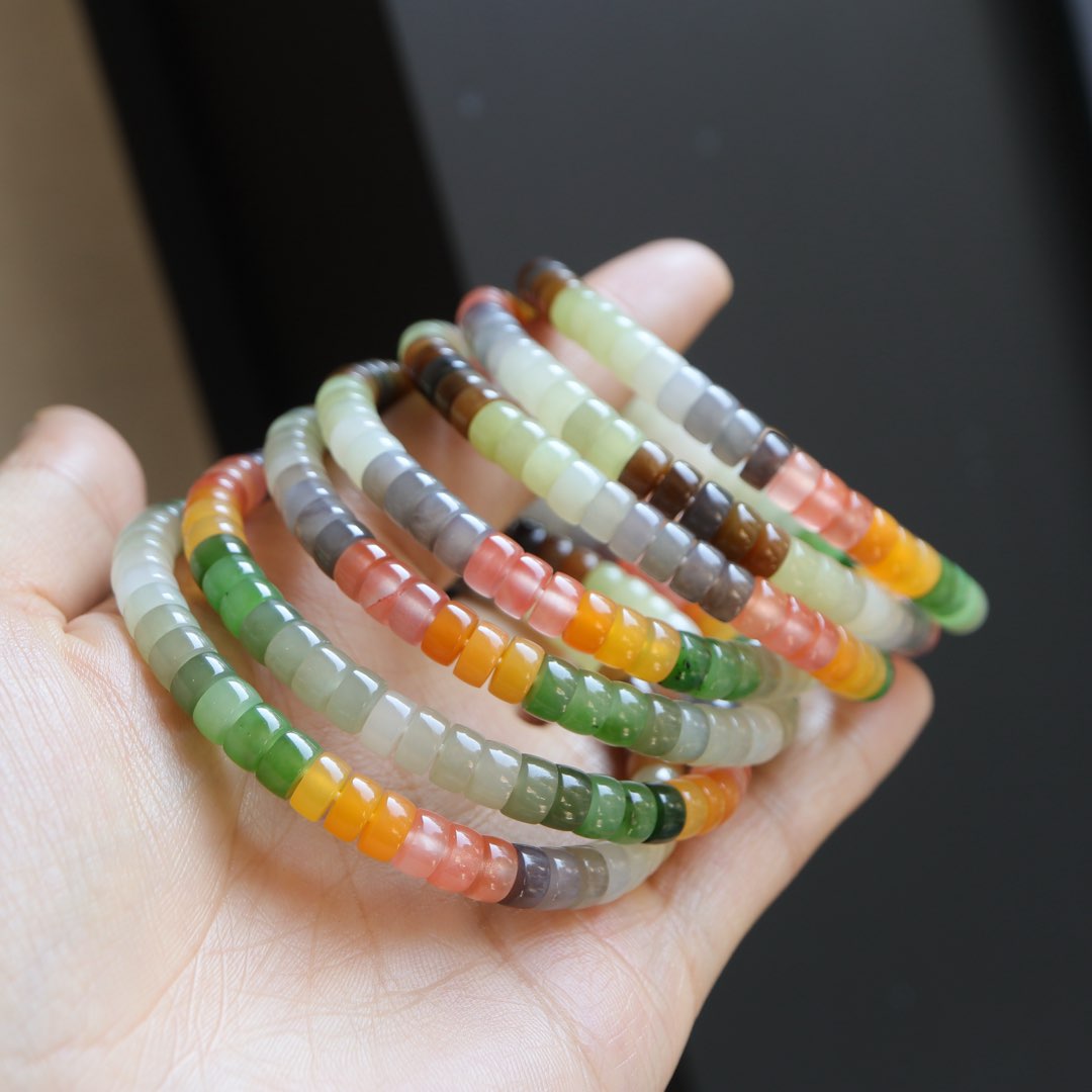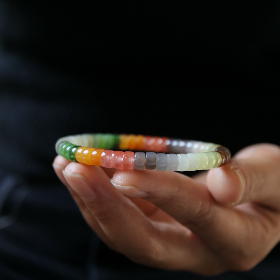 每一颗珠子都采用了直切的工艺,使得珠子呈现出独特的形状,而多彩的设计则让手串更加丰富多彩。