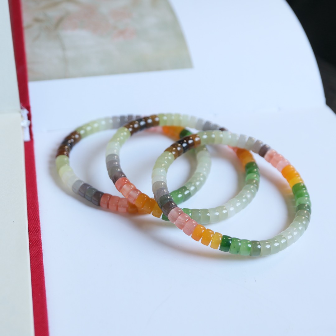 天然和田玉多彩直切手串,水头十足,油润细腻,它集合了碧玉、南红、缅黄、烟紫、黄口、晴水等多种美玉,是一场视觉的盛宴!