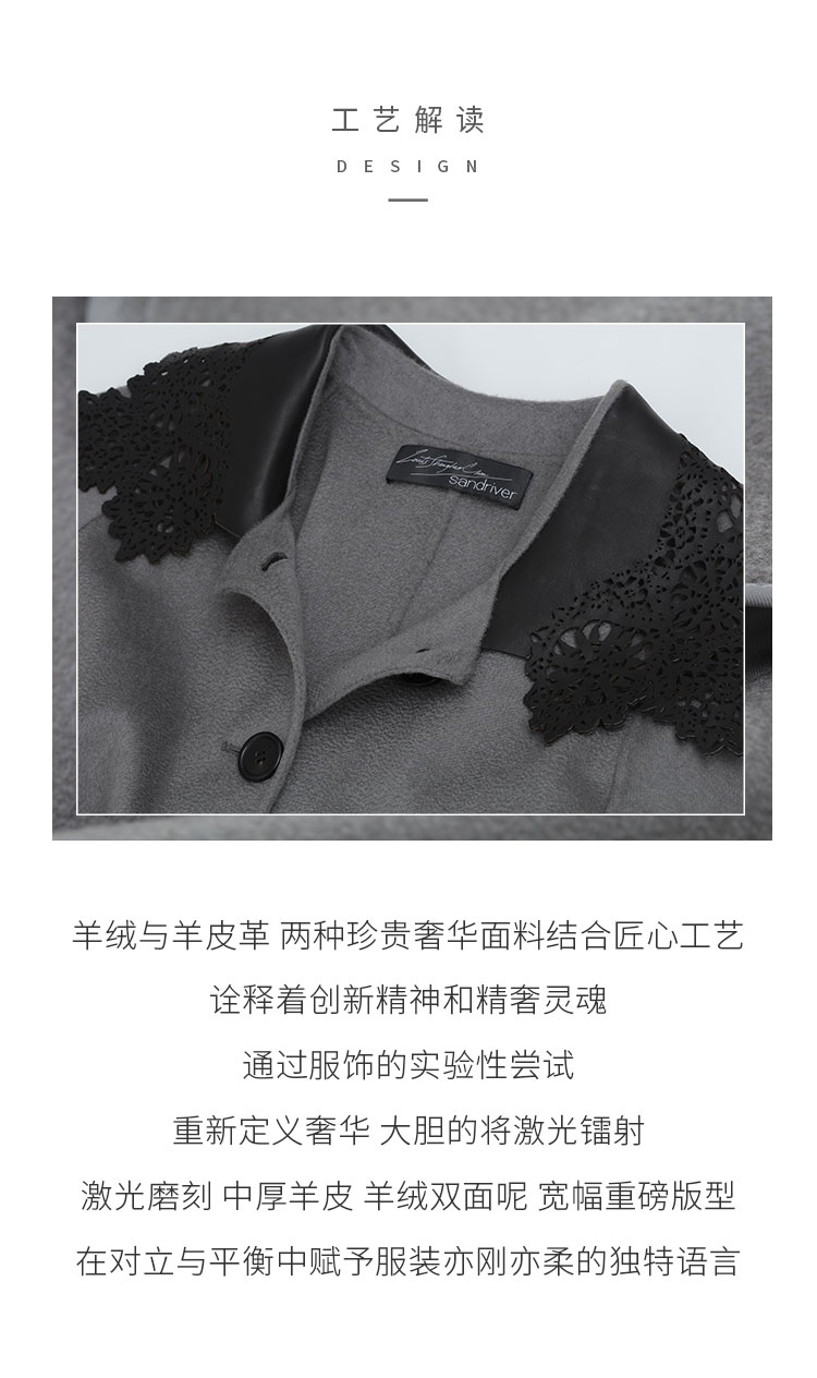 历年在巴黎时装周亮相,享誉世界的艺术羊绒品牌[Sandriver 沙涓]由羊绒布道者郭秀玲女士创立。阿拉善自有牧场纯种羔羊绒,日本国宝设计师小筱顺子,上海自有基地精工细作。承载羊绒情怀,坚持匠人品质。