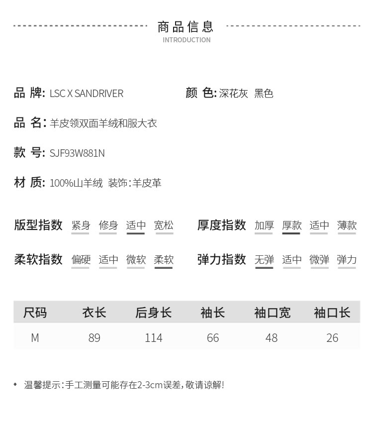 x LSC 羊皮领双面羊绒和服大衣 SJF93W881N