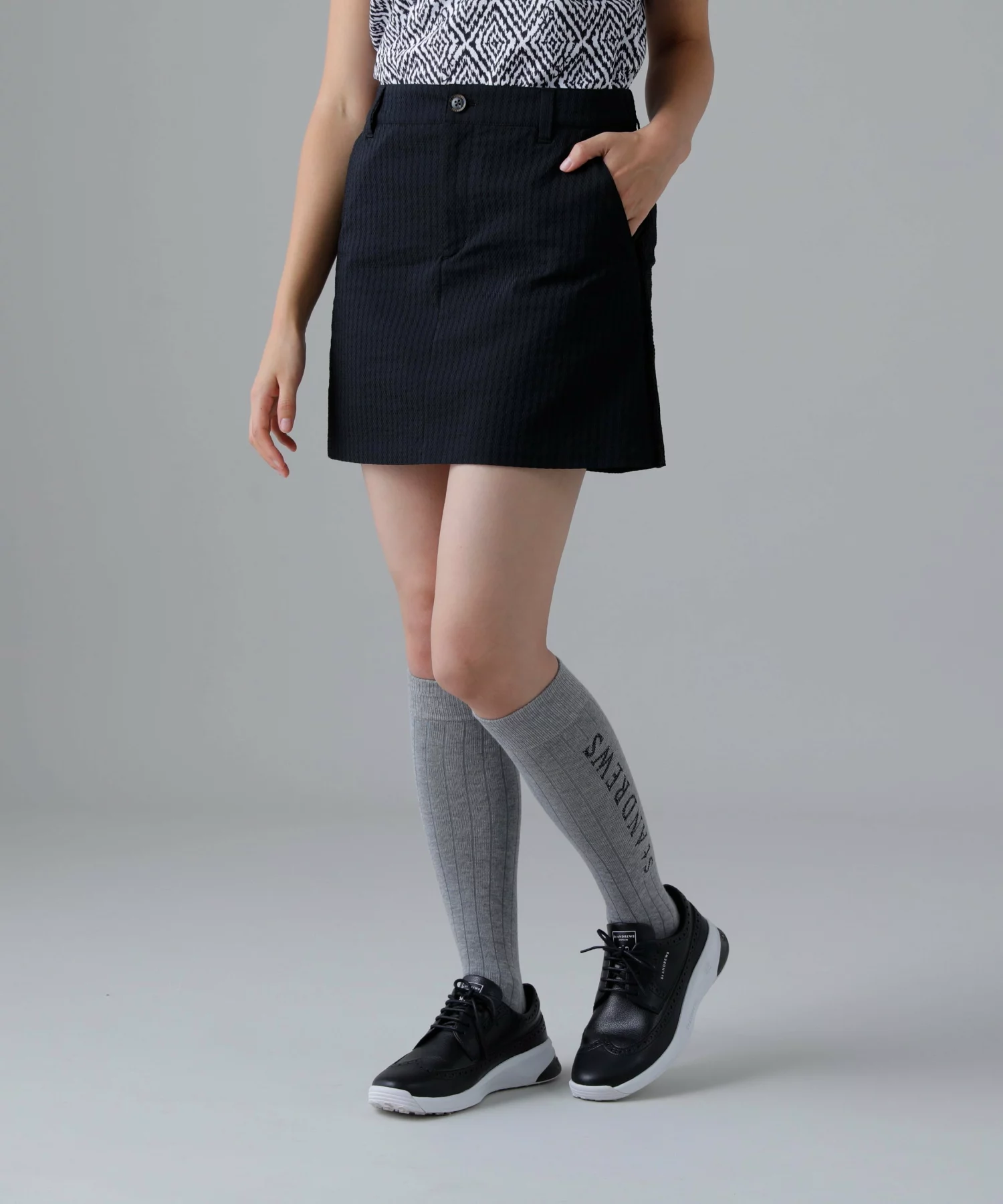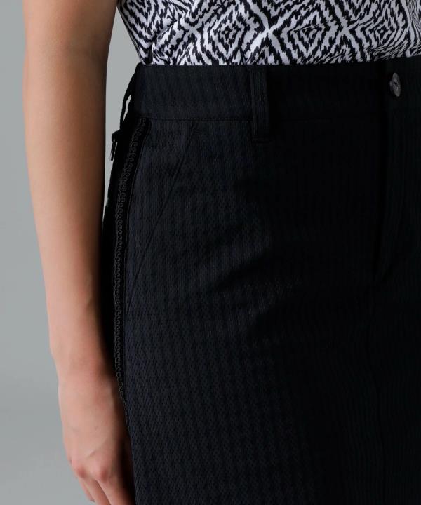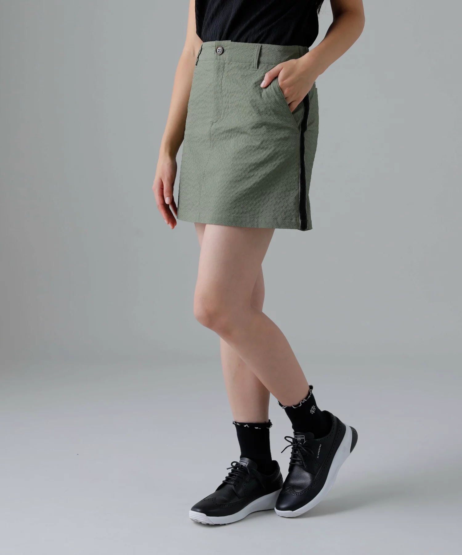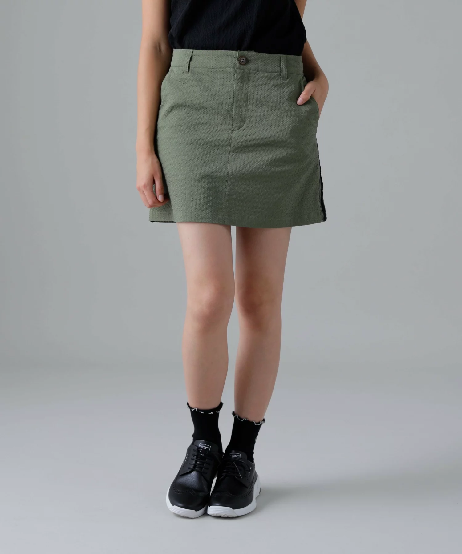 采用带细微菱格肌理的提花面料,搭配侧边黑色条纹拼接,质感细腻且带有休闲运动风;版型是利落的短款A字,既能修饰腿型,也灵活地适应高尔夫的动作,无束缚更自在,同时有效防透,舒适与安心兼备。搭配简约上衣+休闲鞋,既能满足高尔夫等轻运动场景,也能作为日常通勤的休闲造型单品。 具体尺寸: XS:腰围64cm/臀围85cm/裙长38cm S:腰围66cm/臀围88cm/裙长39cm M:腰围70cm/臀围92cm/裙长41cm L:腰围75cm/臀围95cm/裙长42cm (Tip:尺寸均为手工测量如有1-3cm误差属正常情况) 外单保真,部分三标不齐(领标,洗标,吊牌),介意者慎拍!