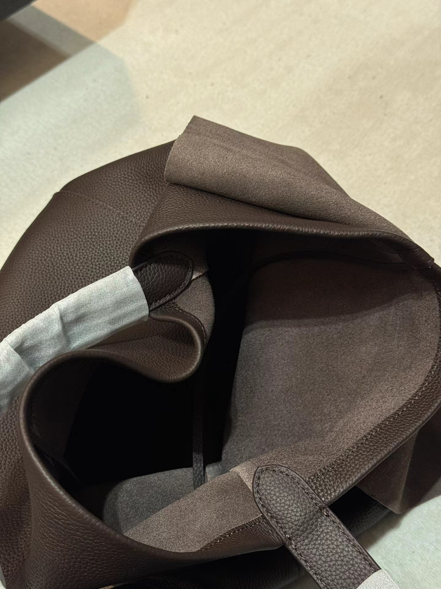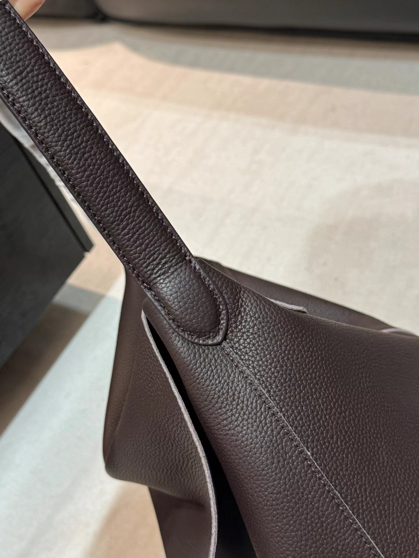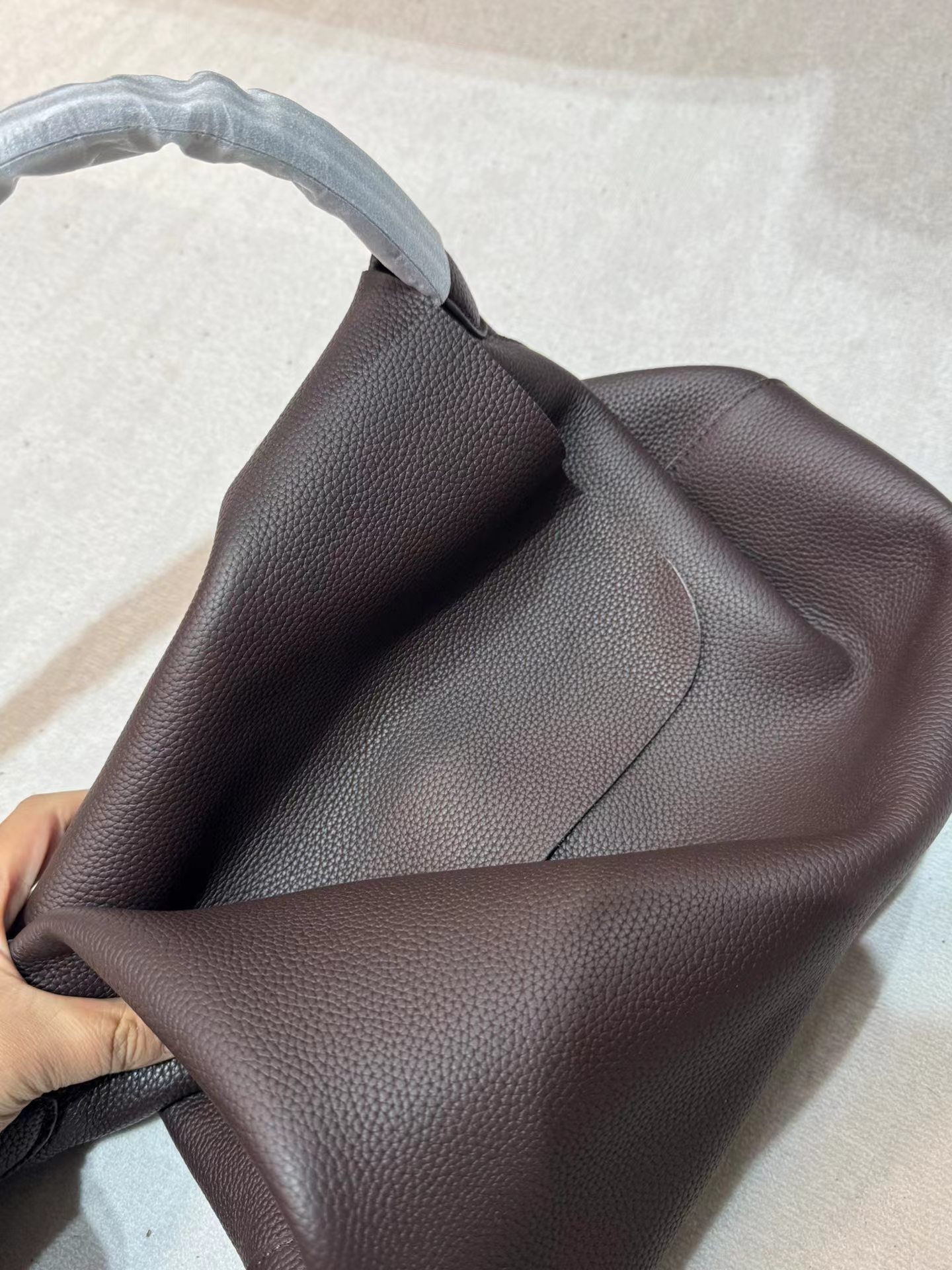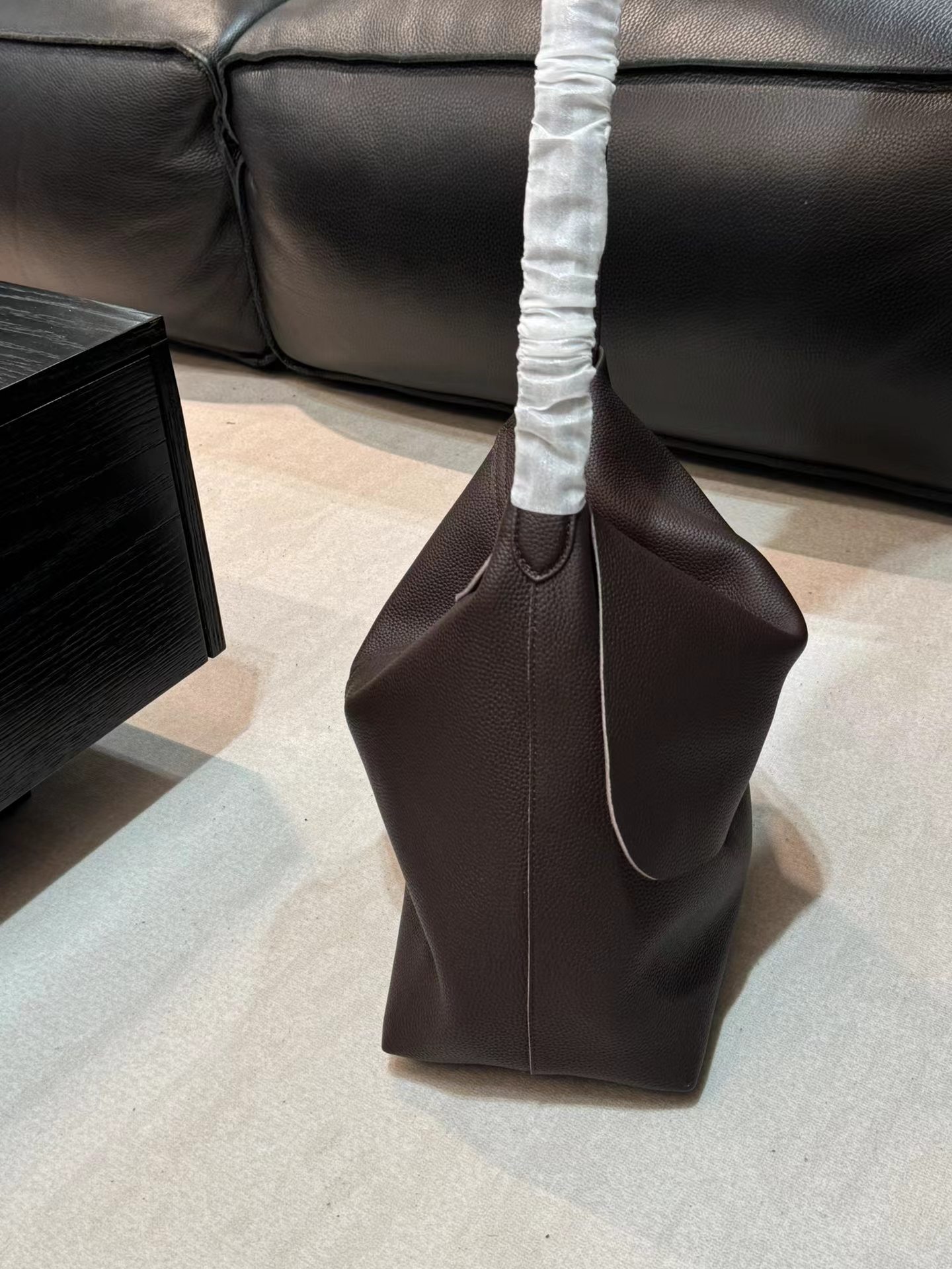 头层牛皮腋下托特包水桶 慵懒松弛感 小众设计打破常规简约造型 轻若无物却质感爆棚 柔软包身 适合四季 空间格局很能装 黑棕两色 实用性与质感于一身的托特包