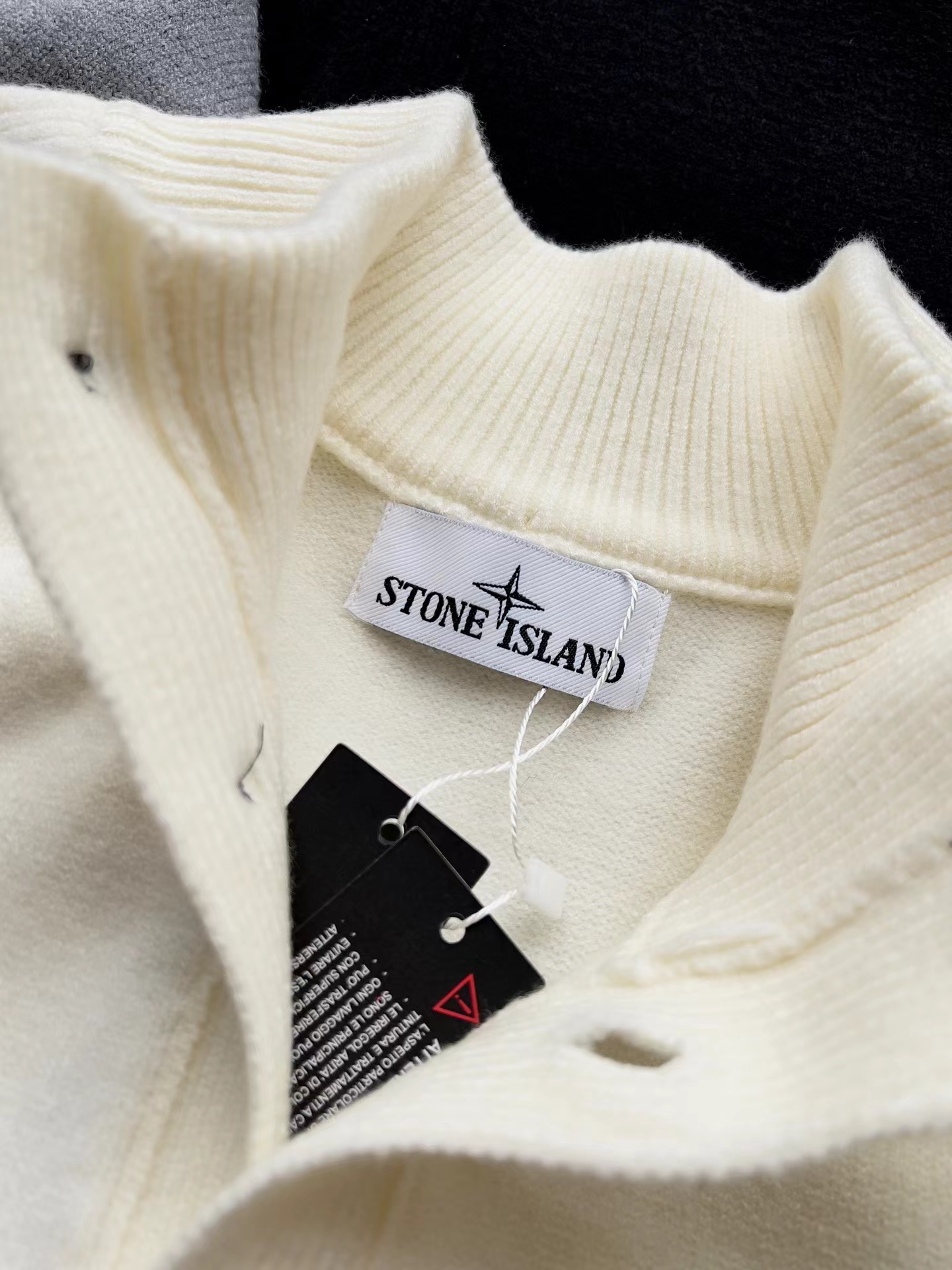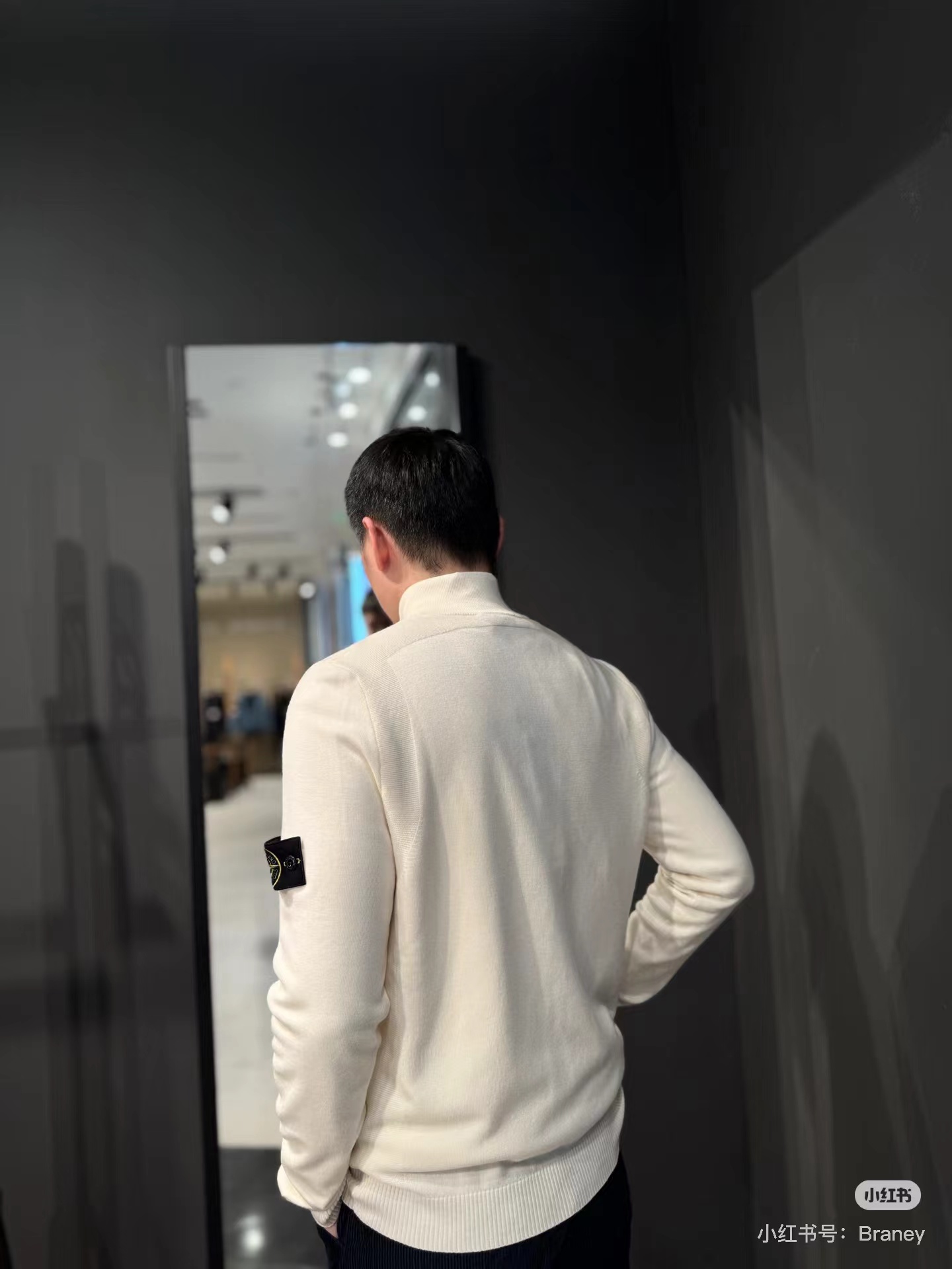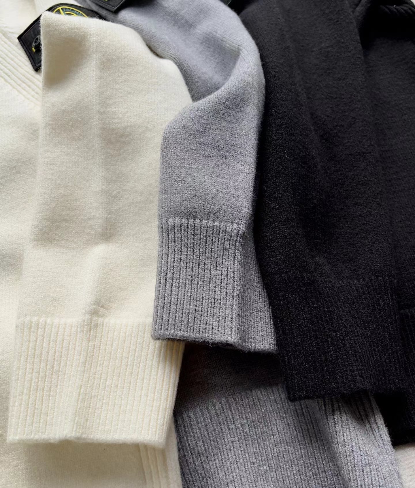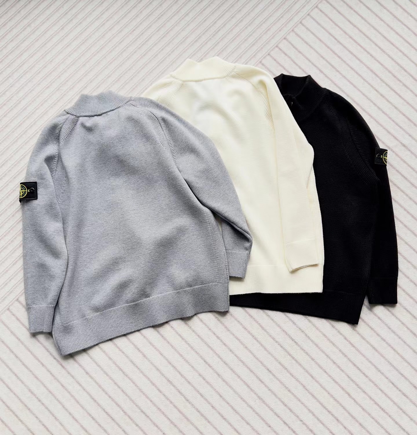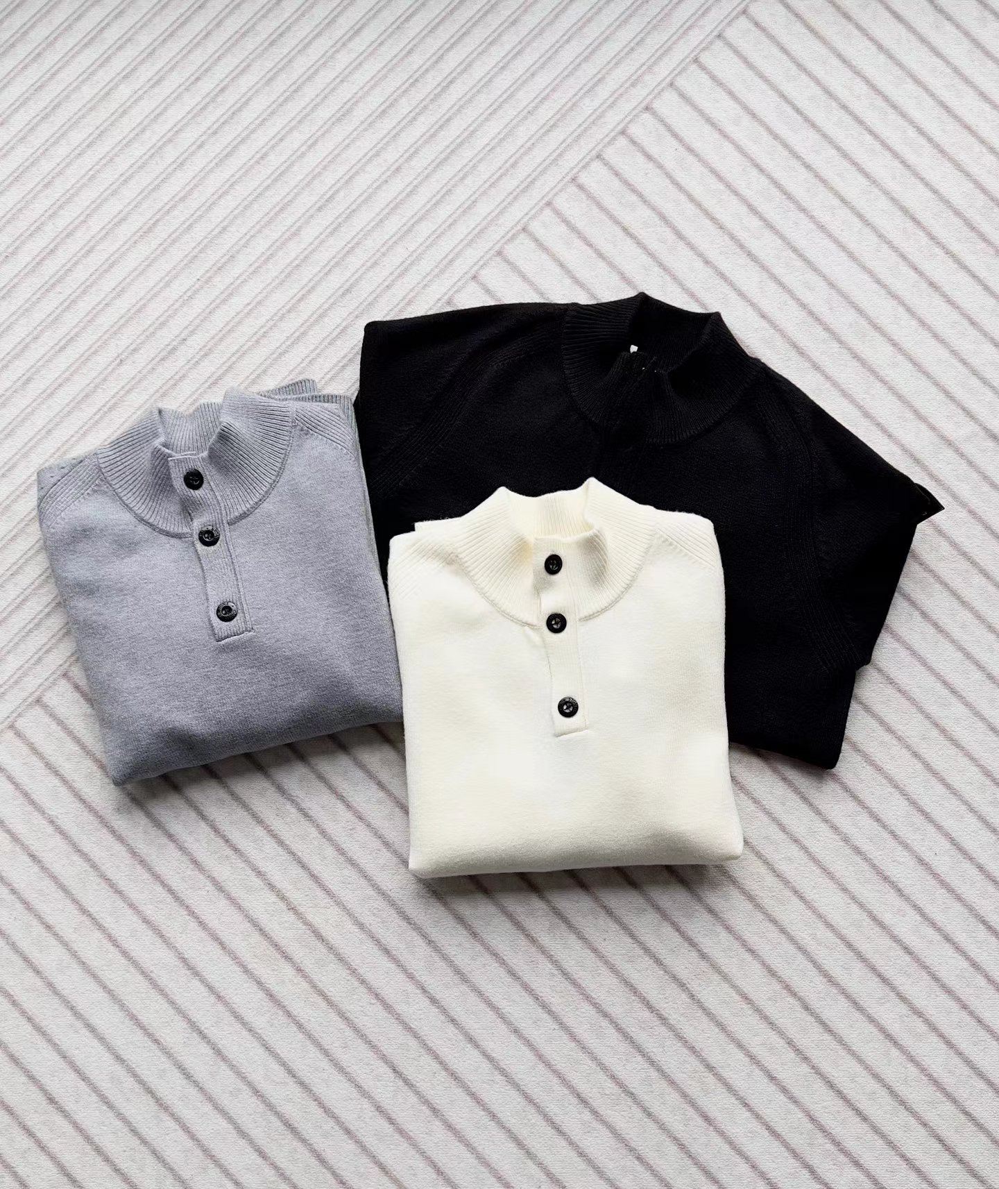 棉毛混纺半纽扣高领针织套头毛衣。高领立领半开纽扣毛衣,反丝袜针线带+凸起边接缝。棉毛混纺材质 针织结构。下摆、袖口,领口 均有螺纹边收口。袖侧标志性可拆卸罗盘绣花徽章。长袖款 平直下摆 常规版型。本产品为棉毛混纺针织衫,手感柔软舒适亲肤,面料弹性大,适合多样人群 大众身材。不挑人,非常百搭。可内穿增温保暖也可外穿套头外套。版型微宽松,男女都可驾驭。