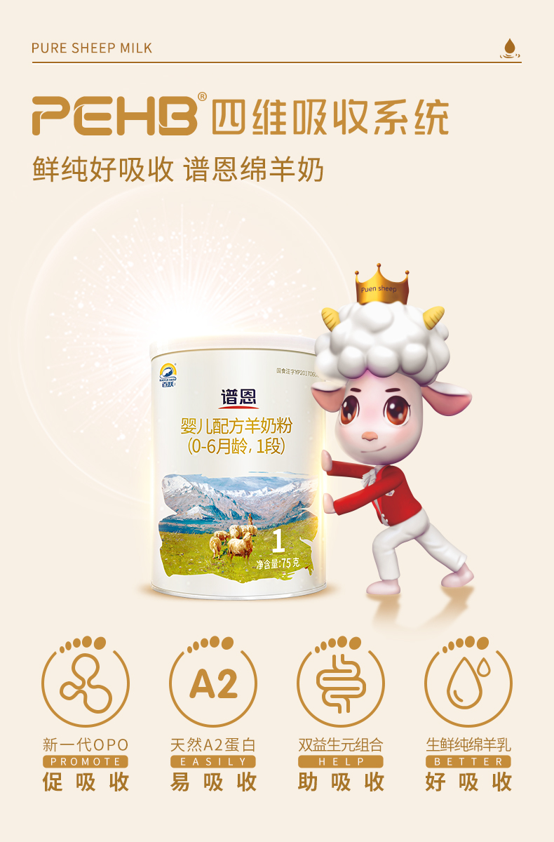 百跃·谱恩婴儿配方绵羊奶粉1段75克 试用体验装