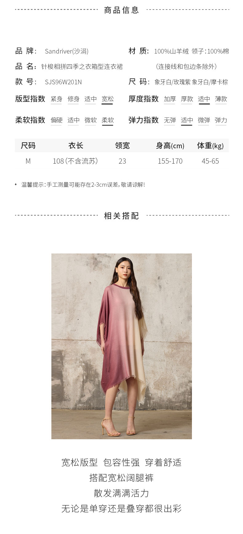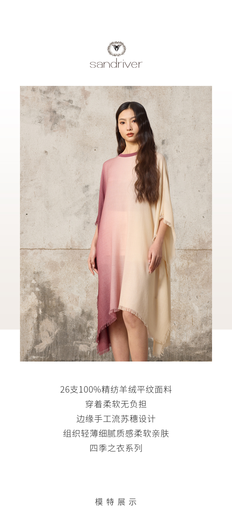 历年在巴黎时装周亮相,享誉世界的艺术羊绒品牌[Sandriver 沙涓]由羊绒布道者郭秀玲女士创立。阿拉善自有牧场纯种羔羊绒,日本国宝设计师小筱顺子,上海自有基地精工细作。承载羊绒情怀,坚持匠人品质。