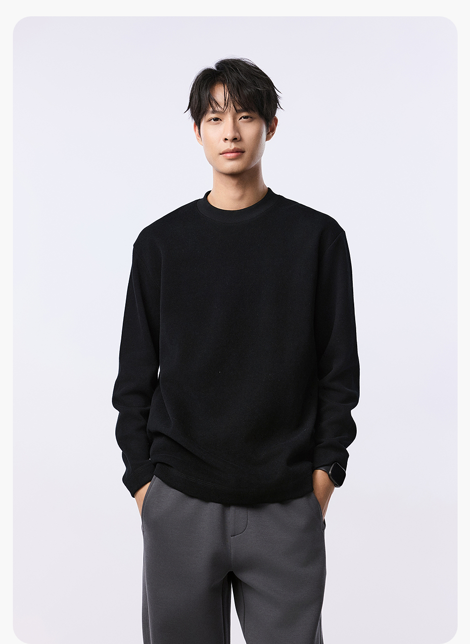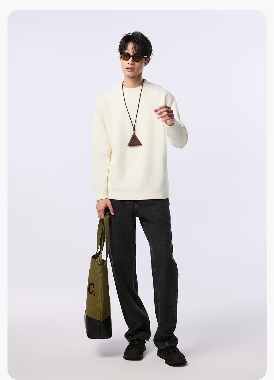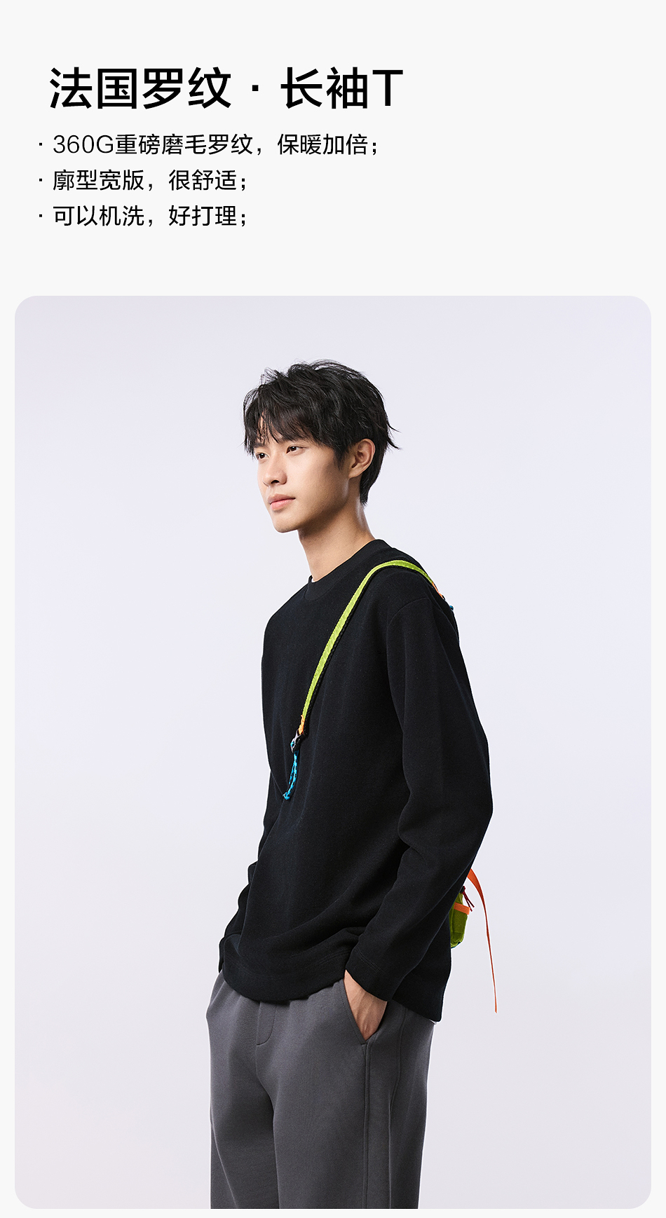 棉仓356801001 -法国罗纹微宽松长袖T恤