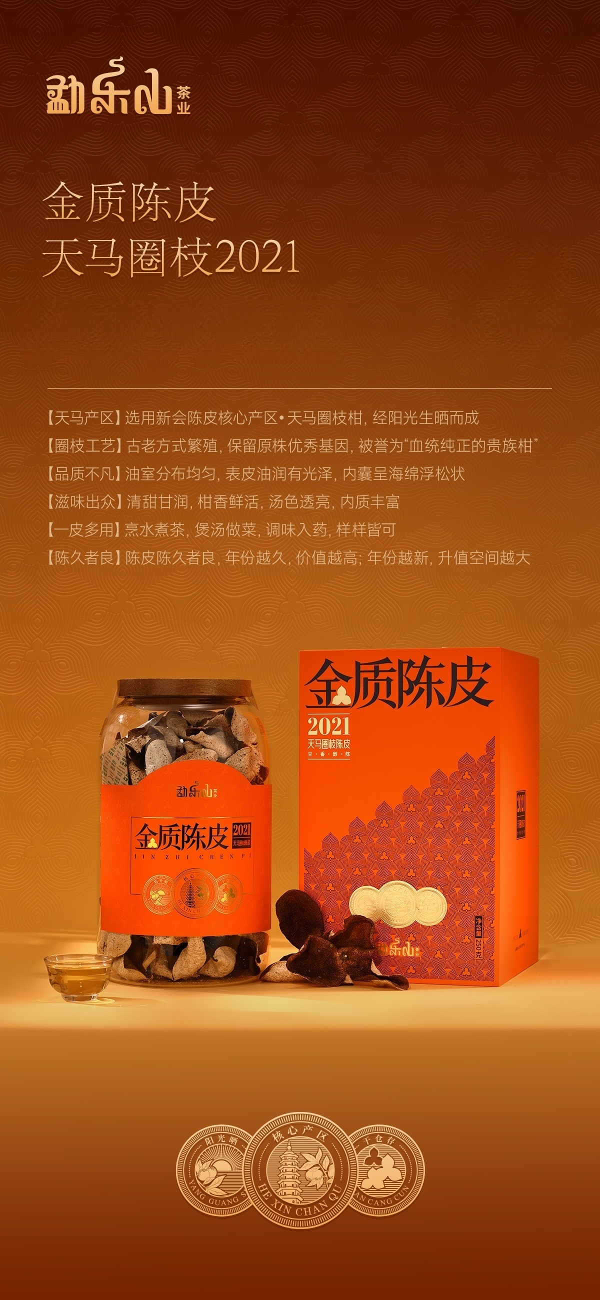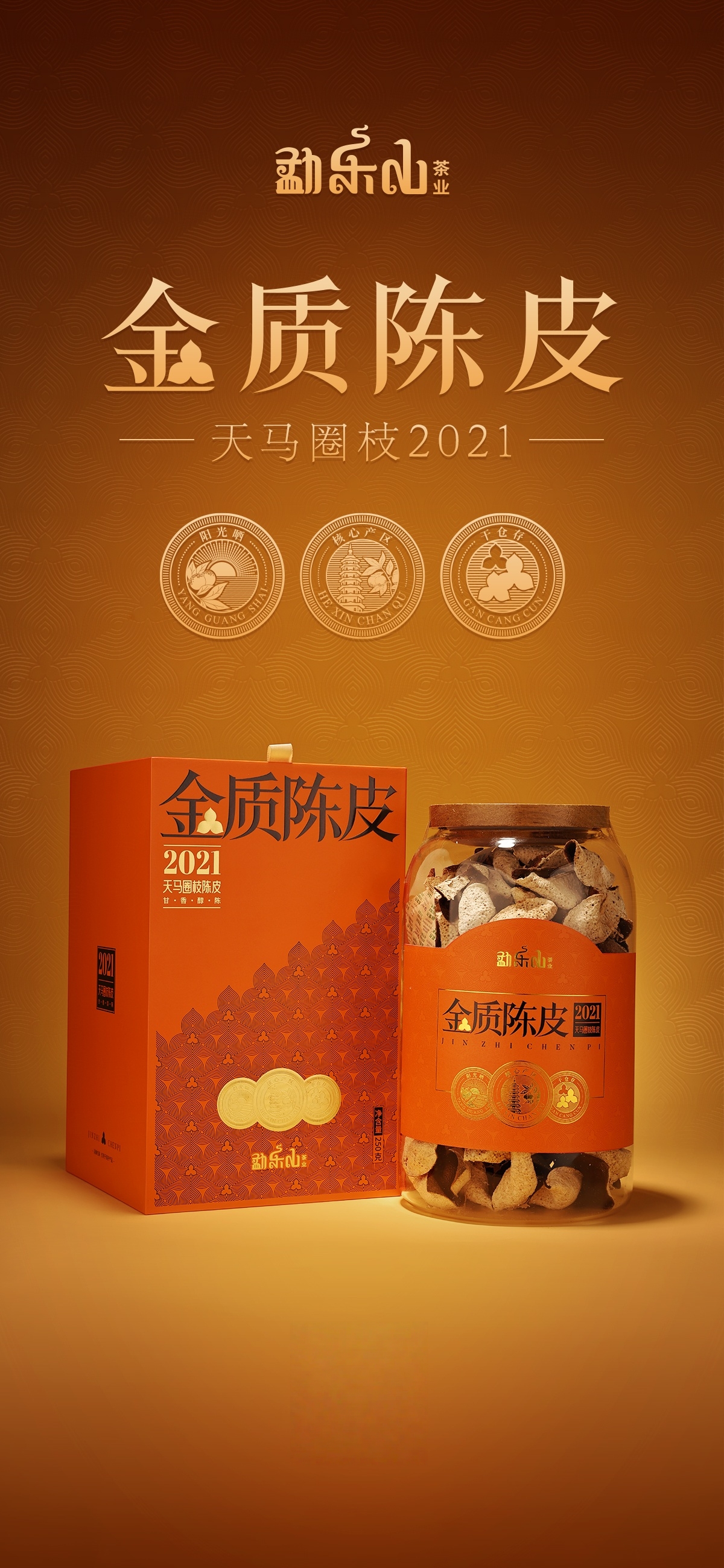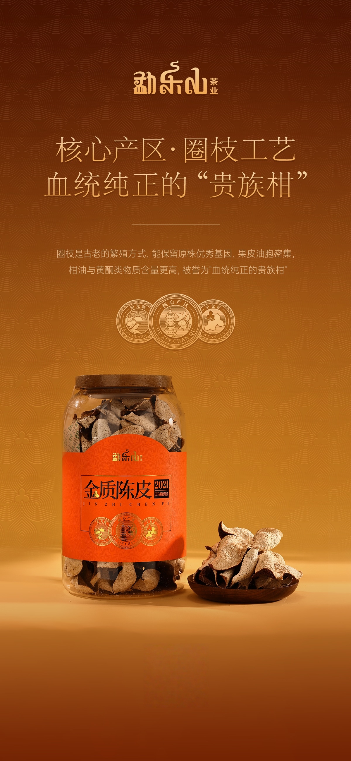 勐乐山干仓陈皮(金质陈皮-天马圈枝2021)玻璃罐装250g