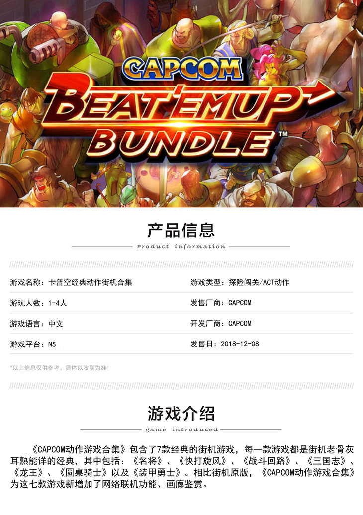 【畅玩卡可租】二手Switch游戏 卡普空经典动作街机合集 中文版