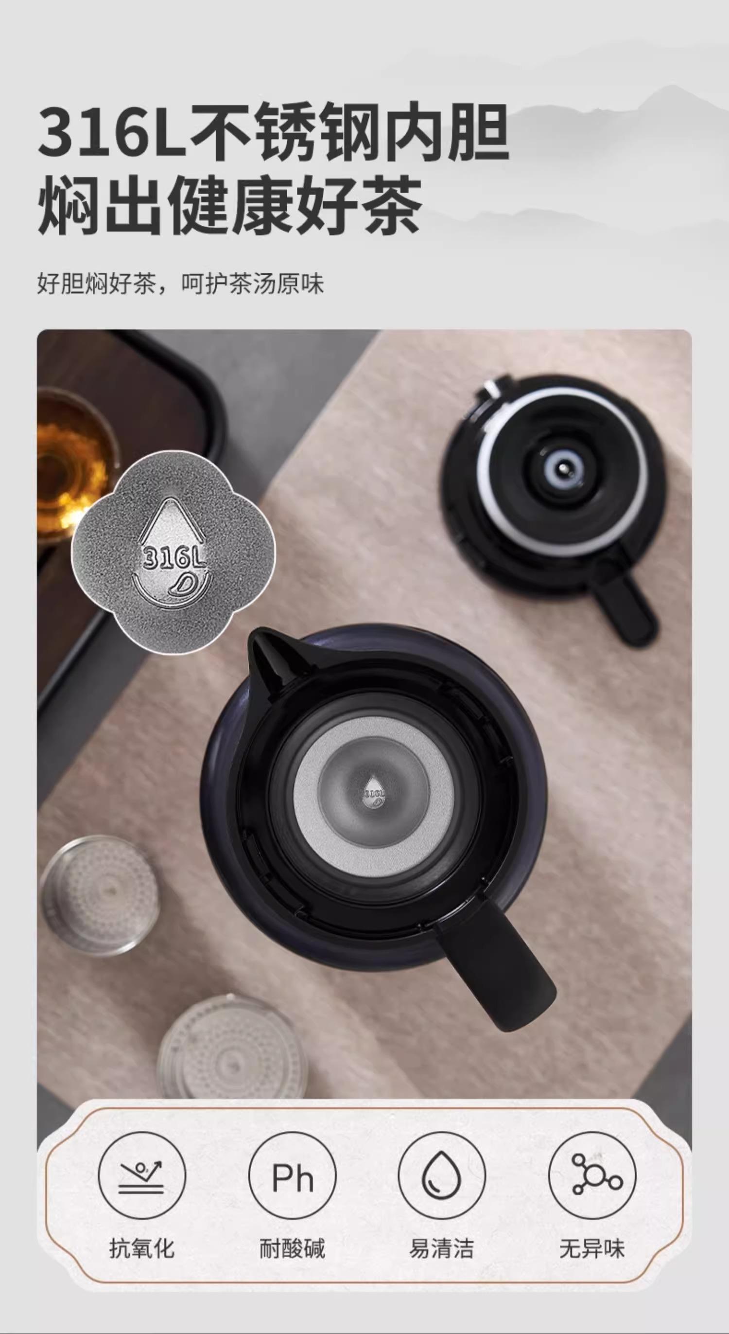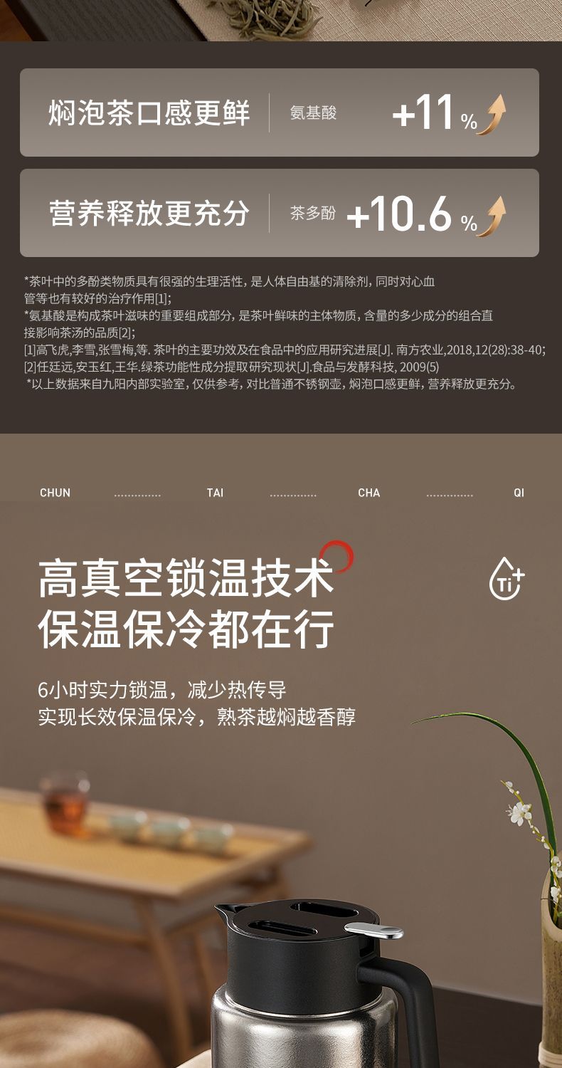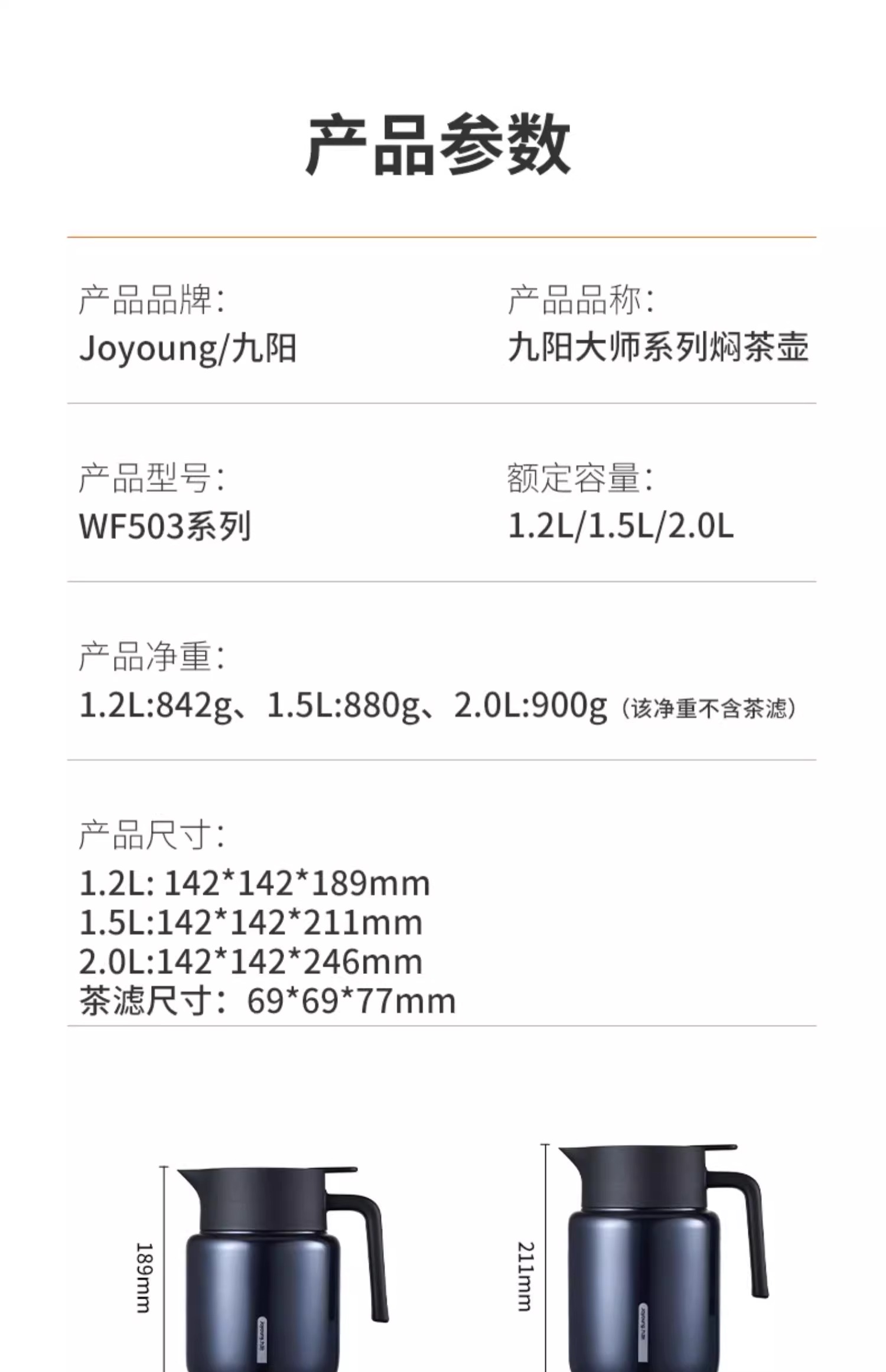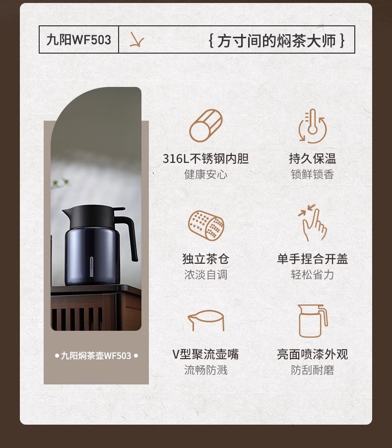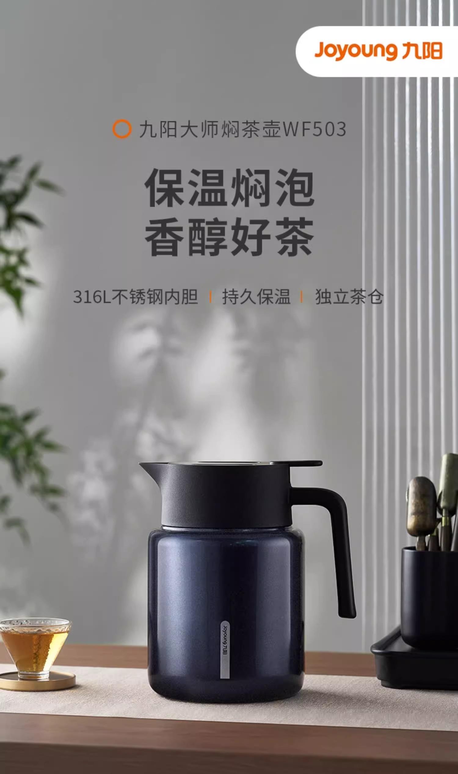 九阳焖茶壶家用316L不锈钢保温壶焖壶茶壶大容量热水壶暖水壶