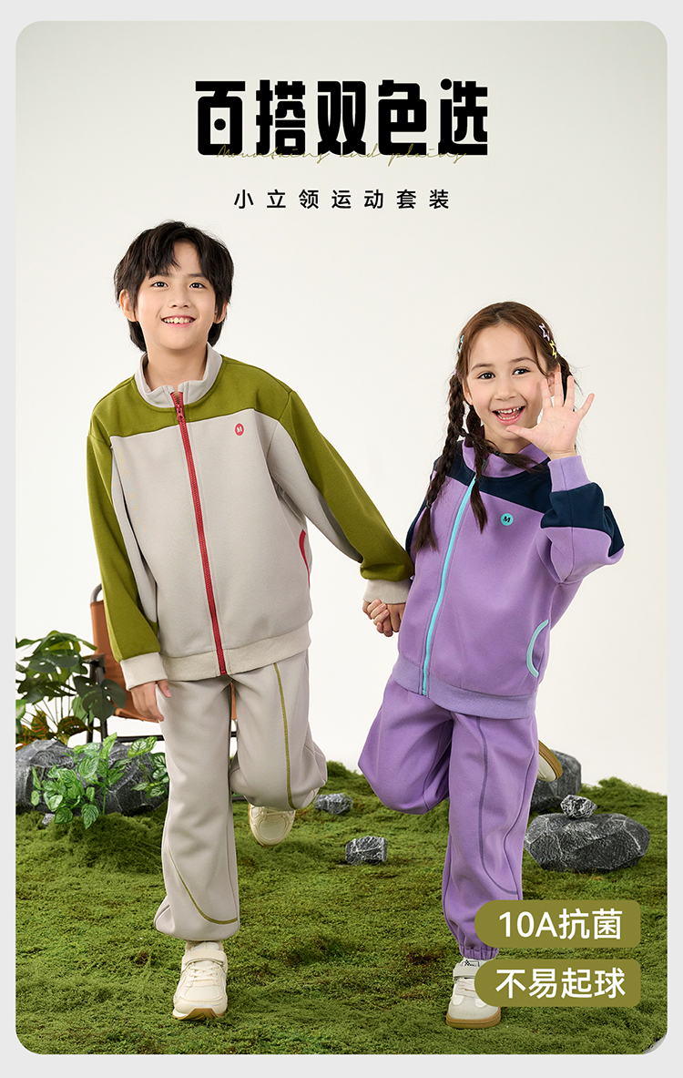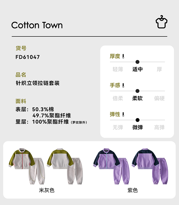【立领运动套装】棉花堂针织立领拉链套装 10A级抗菌 不易起球 挺阔有型 FD61047