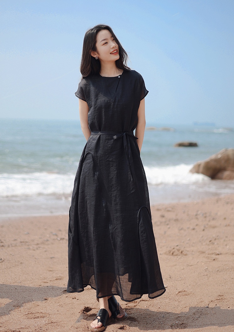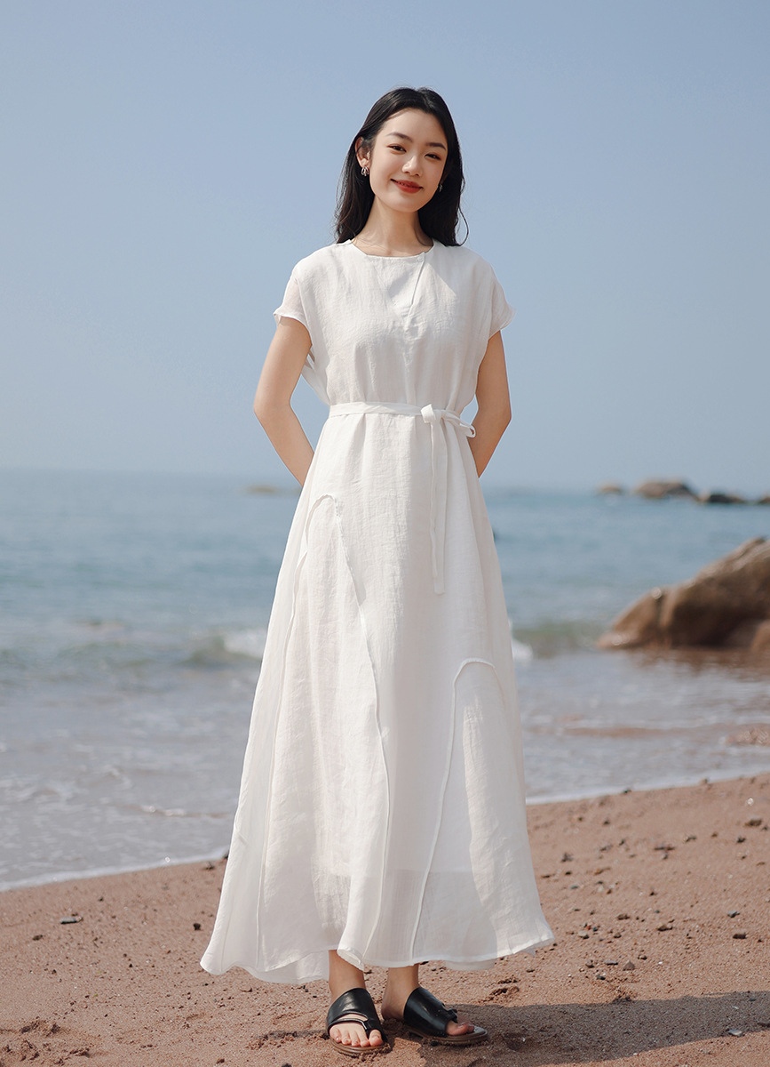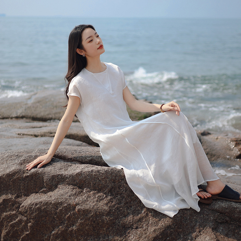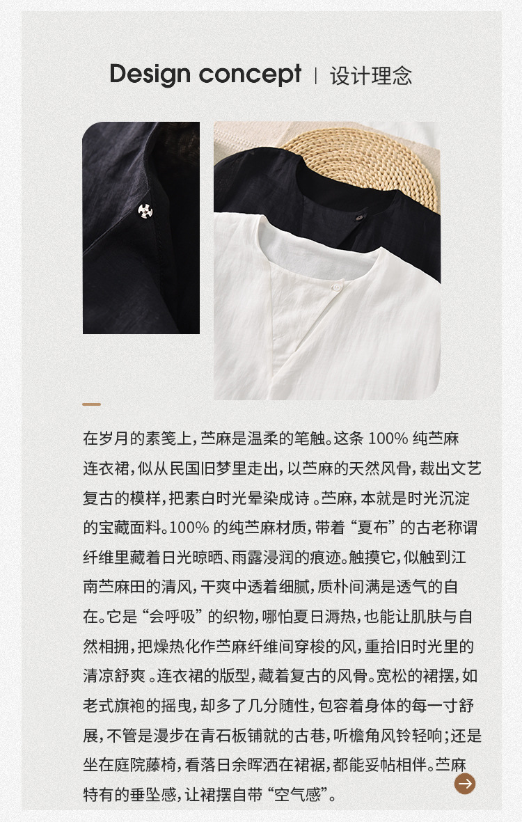 这条100%纯苎麻连衣裙,似从民国旧梦里走出,以苎麻的天然风骨,裁出文艺复古的模样,把素白时光晕染成诗。苎麻,本就是时光沉淀的宝藏面料。