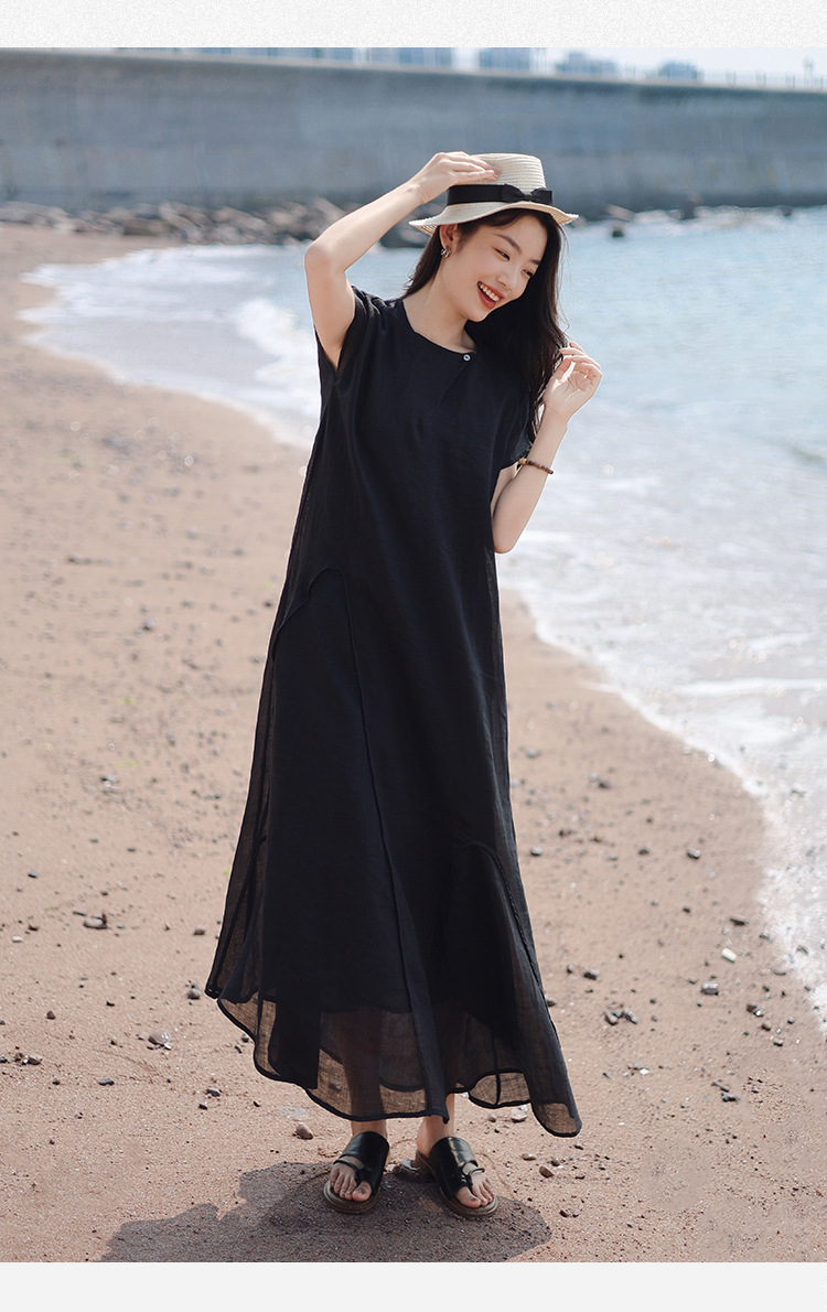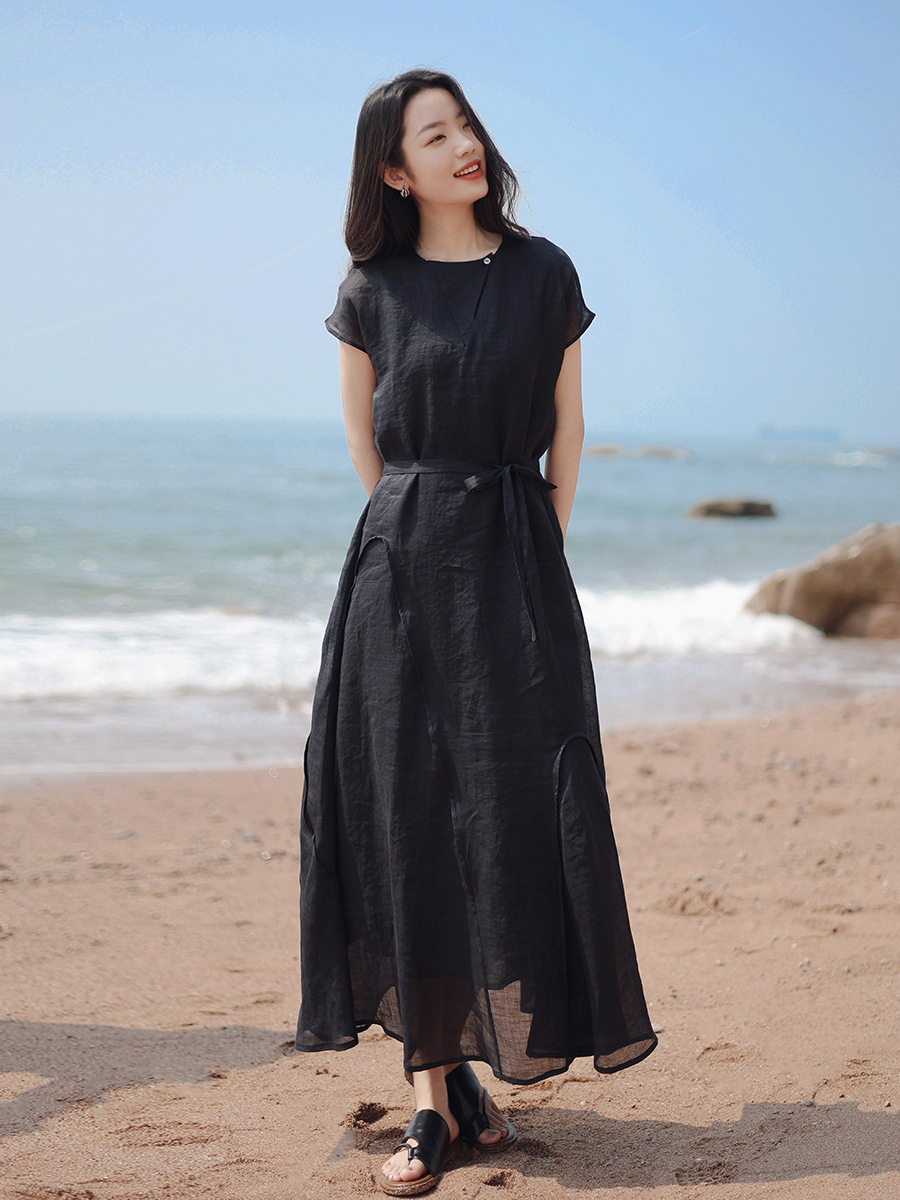 苎麻特有的垂坠感,让裙摆自带“空气感”。