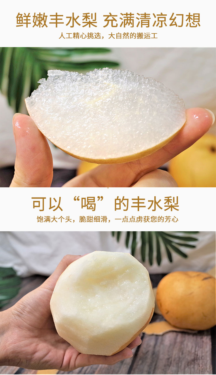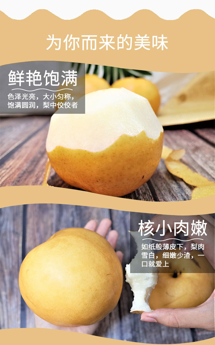 丰水梨自然生长,历经风吹雨打,个别果子表皮会有细小疤痕、斑点,不影响食用哦