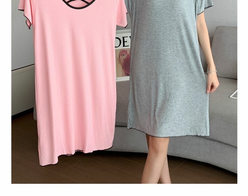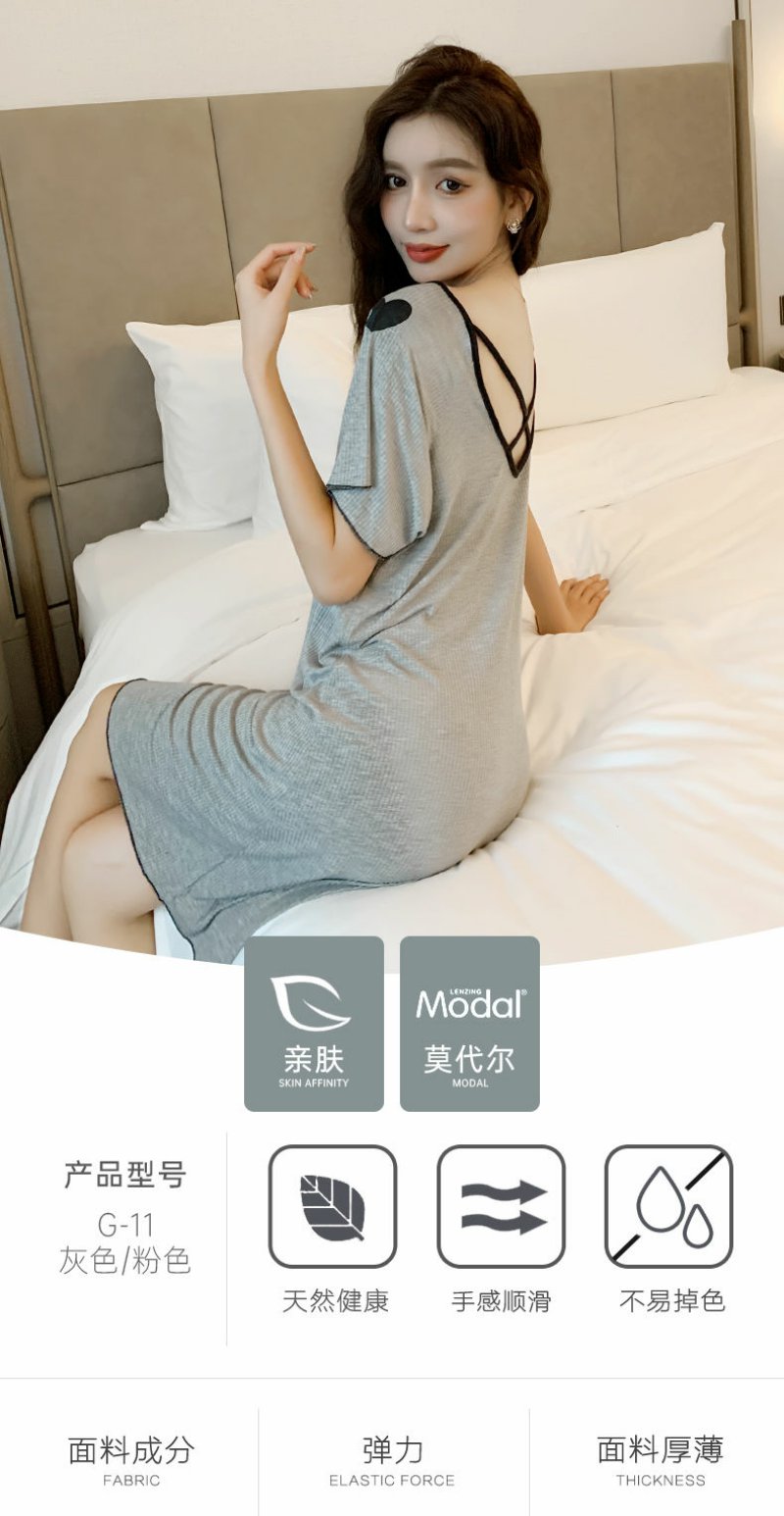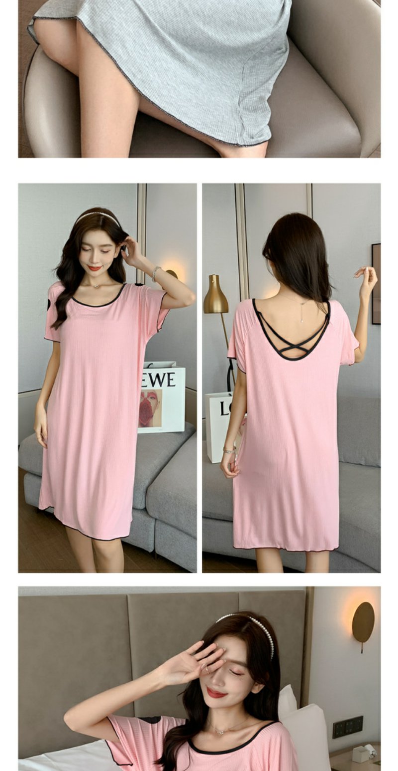 古拉苏5XL大码莫代尔睡裙性感露背裙夏季短袖宽松胖mm孕妇家居服