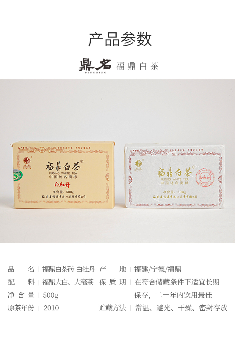 福鼎白茶砖2010年白牡丹500g