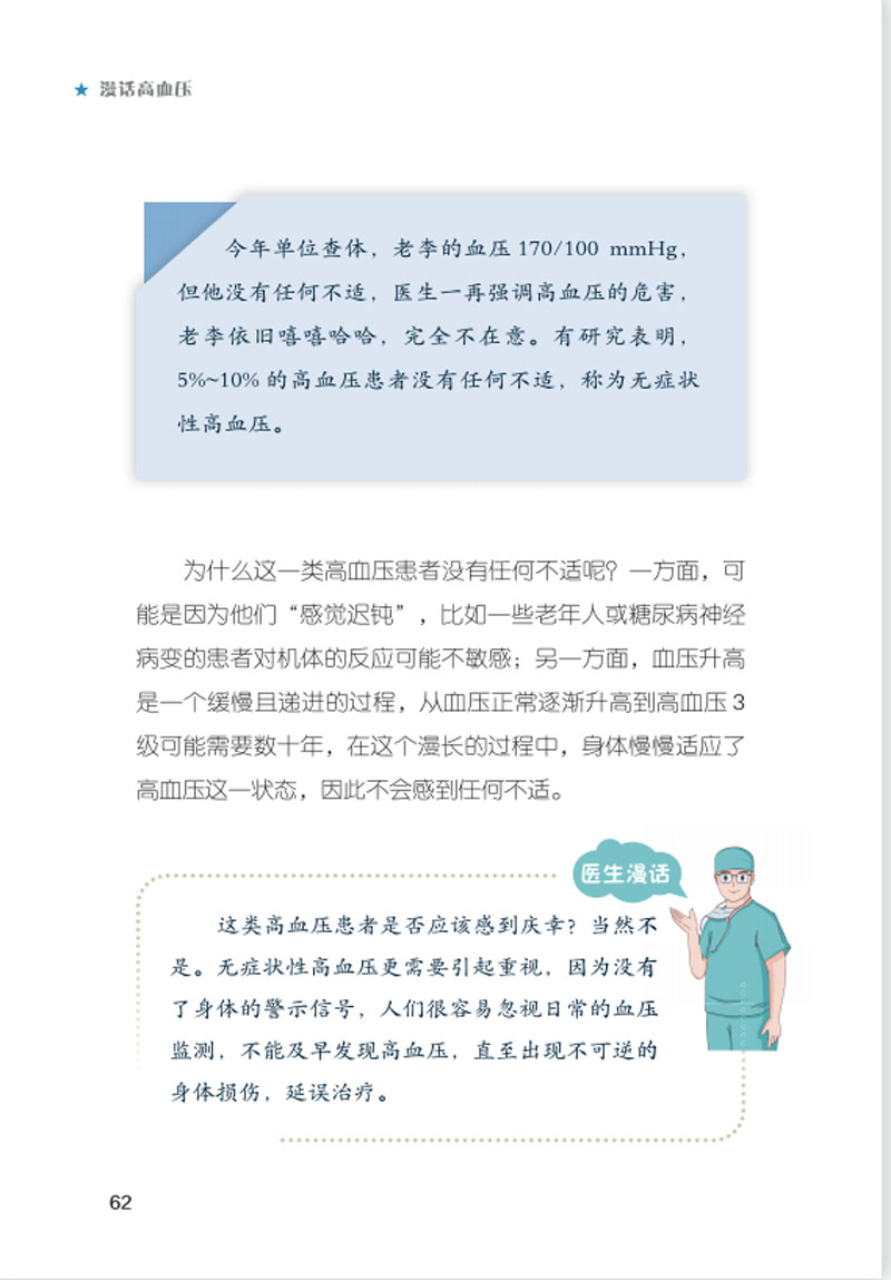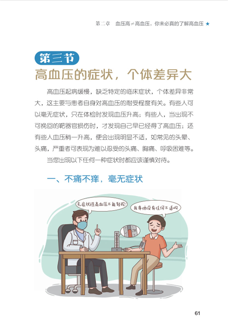 心脑血管疾病是我国居民的“头号杀手”,而引发心脑血管疾病的最重要原因就是高血压。我国高血压患者约有3亿人,但大众对高血压的知晓率、治疗率和控制率都比较低,并且对高血压的认识和治疗还存在很多误区。本书从大众对高血压的认识误区入手,结合大量的临床案例,配以丰富的漫画,通俗生动地介绍了高血压的病因、预防、诊断和治疗,强调认识和控制高血压的重要性,倡导治疗前要先科学筛查病因,普及有一类继发性高血压可通过手术治愈。本书打破固有认知,用紧贴生活的案例和诚恳暖心的提醒引导大众走出认知误区。无论你是否患有高血压,都能从中获得大量实用、靠谱的知识。本书内容通俗易懂,图文并茂,也很适合送给父母长辈阅读。