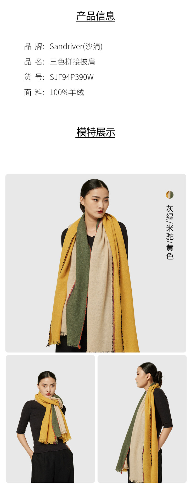 羊绒三色拼接披肩 SJF94P390W