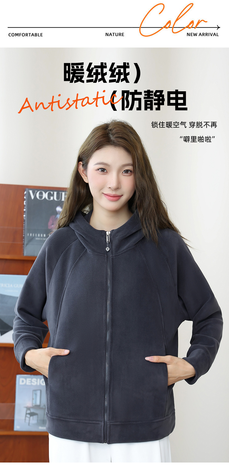 冬季暖绒绒 情侣款【梦惠妮 奥粒绒连帽外套】双面毛绒 重磅厚实 软糯保暖 高密度锁温防寒 连帽百搭 宽松遮肉显瘦 #M663
