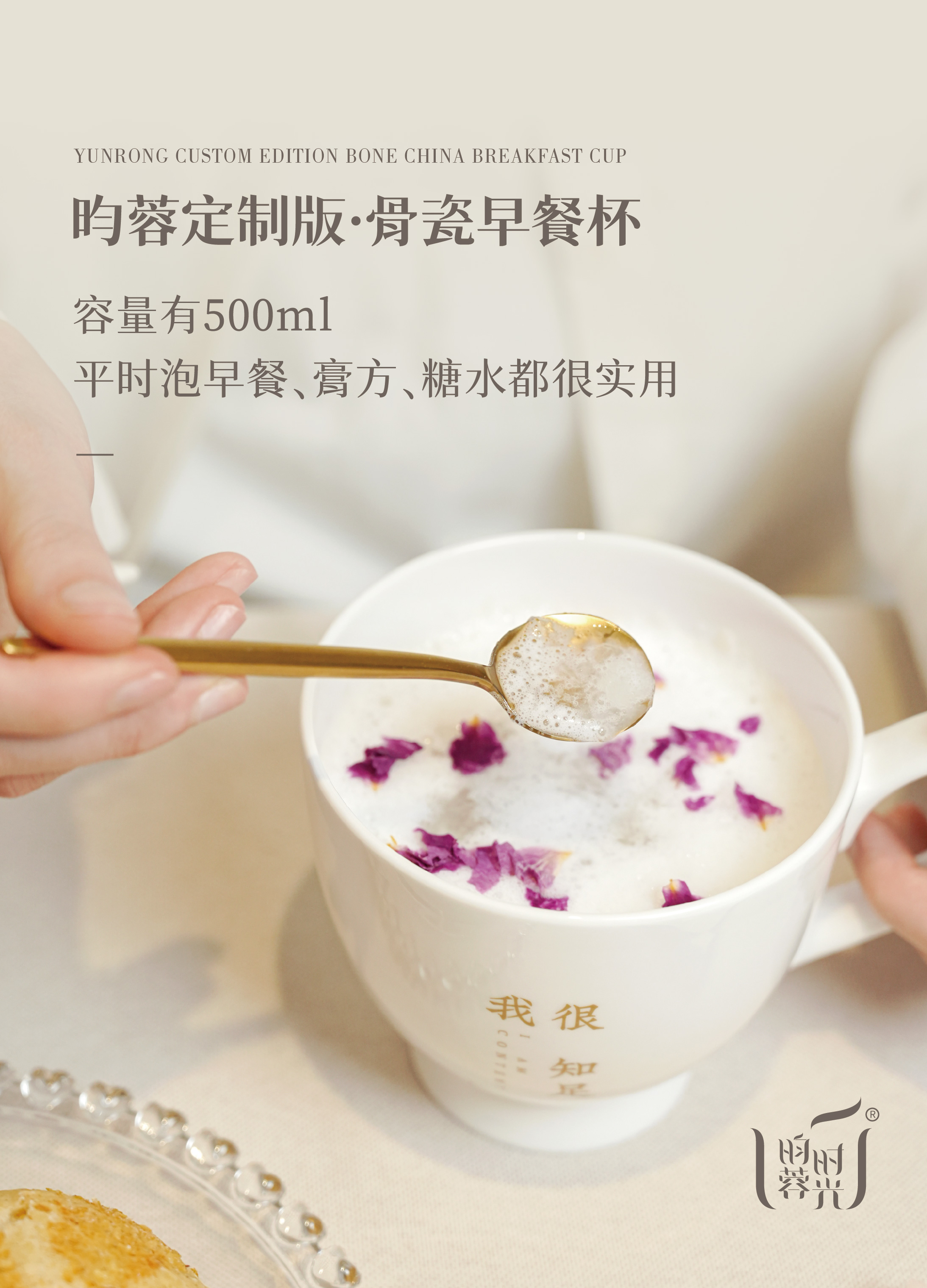 【昀蓉·定制周边】骨瓷早餐杯·骨粉含量≥40%,颜色润,质感满满,500ml大容量,日常饮水泡麦片都好用