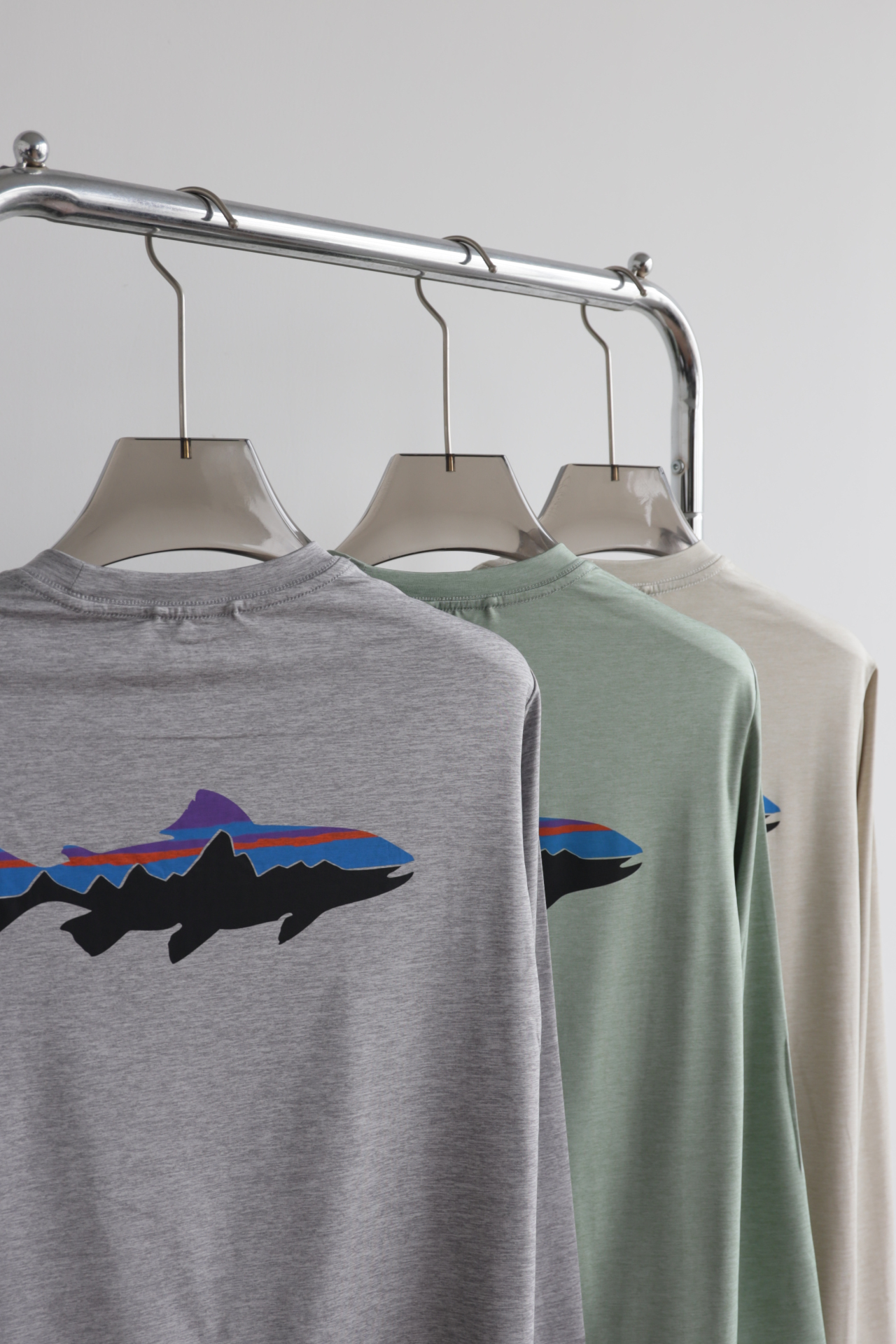 胸前极简小logo低调有辨识度,后背标志性鱼标印花用环保油墨印制,柔软不发硬,久洗不易开裂、褪色;走线工整